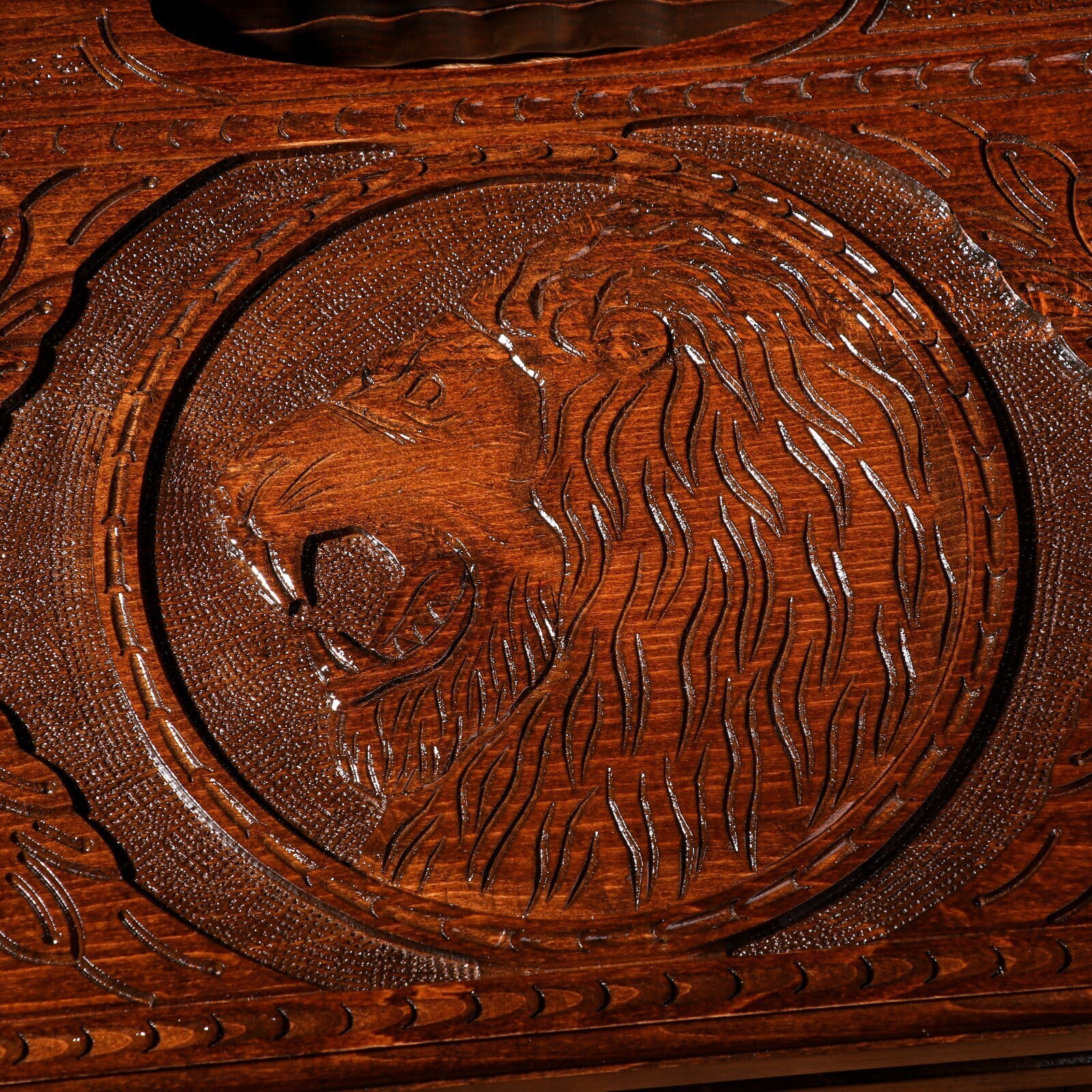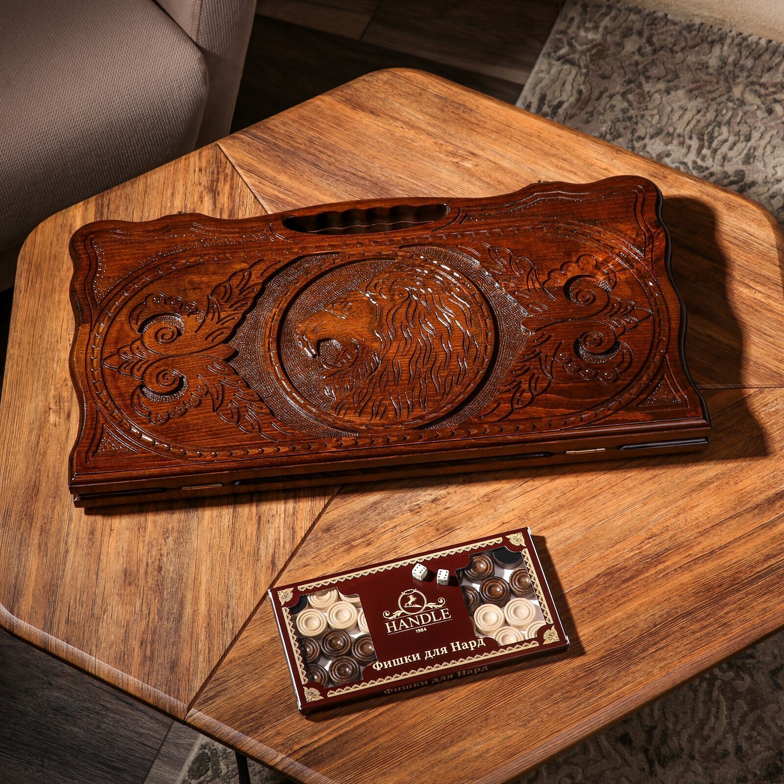 Нарды ручной работы "Лев победитель" с ручкой, 60х30 см, с шахматным полем, Армения