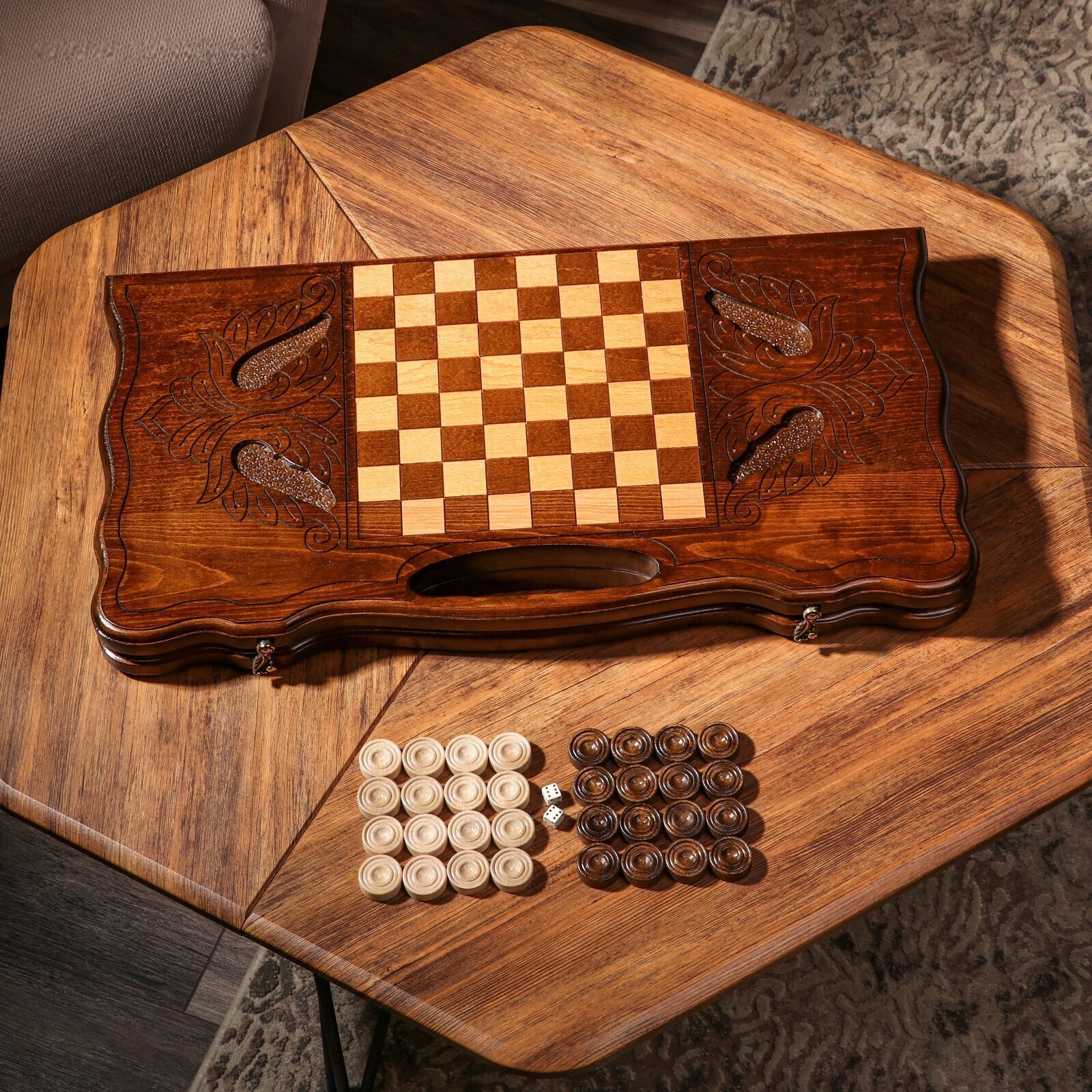 Нарды ручной работы - это классическая настольная игра, проверенная веками. Каждые нарды выполнены мастерами в ручную из высококачественного массива ореха.