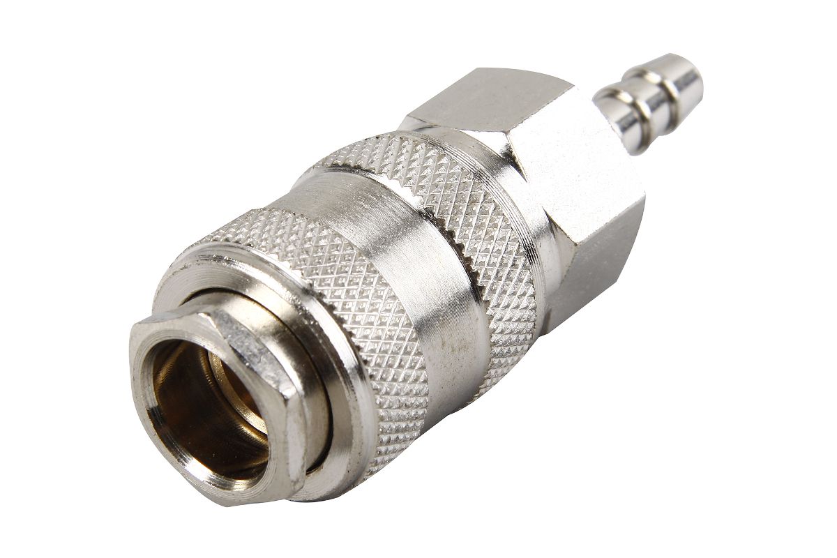Переходник рапид-елочка для подключения компрессора к пневмоинструменту с помощью шланга. Диаметр шланга 6 мм. Крепление к инструменту - рапид, к шлангу - елочка.