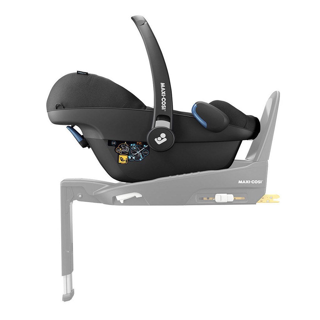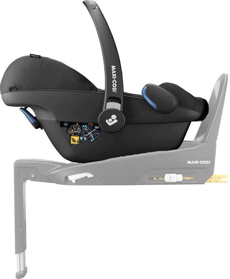 Pebble Pro i-Size можна закріпити в автомобілі як за допомогою ременя безпеки автомобіля, так і базу, яка докуповується окремо. Установка на базу дуже швидка і зручна, про правильність установки крісла на базу вас сповістить звуковий та візуальний сигнали. Посадка і висадка дитини відбувається за лічені секунди завдяки зручним вбудованим 3-точковим ременям безпеки. Крісло також схвалено для використання в літаках.