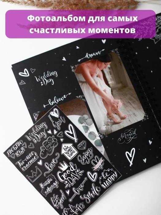 Фотоальбом 10x15 семейный свадебный детский для новорожденных на кольцах большой альбом для фото черный