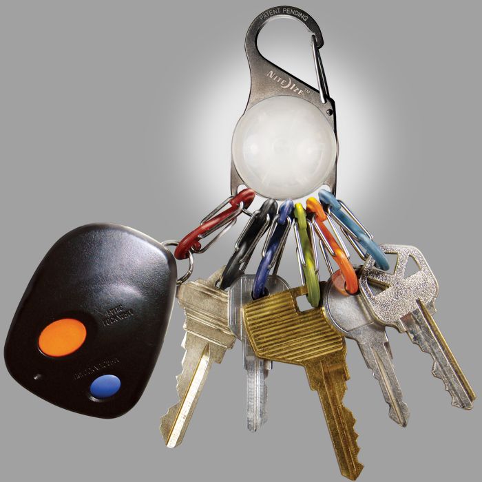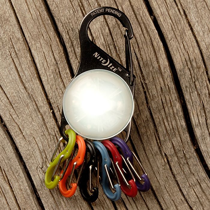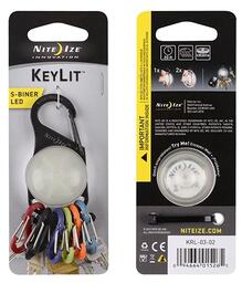 Niteize Keylit - набор карабинов для хранения ключей + светящийся брелок. Основной карабин с установленным светящимся брелоком, дополнительные карабины - пластиковые S-biner. Ударопрочный и влагозащищенный светящийся брелок: время работы: 20 часов в стандартном режиме, 25 часов в "мерцающем" режиме. Легко заменяемые 2 х 2016 3V литиевые батареи в комплекте. Габариты карабина: 90.28mm x 32.84mm x 21.31mm. Вес 29.00 гр.