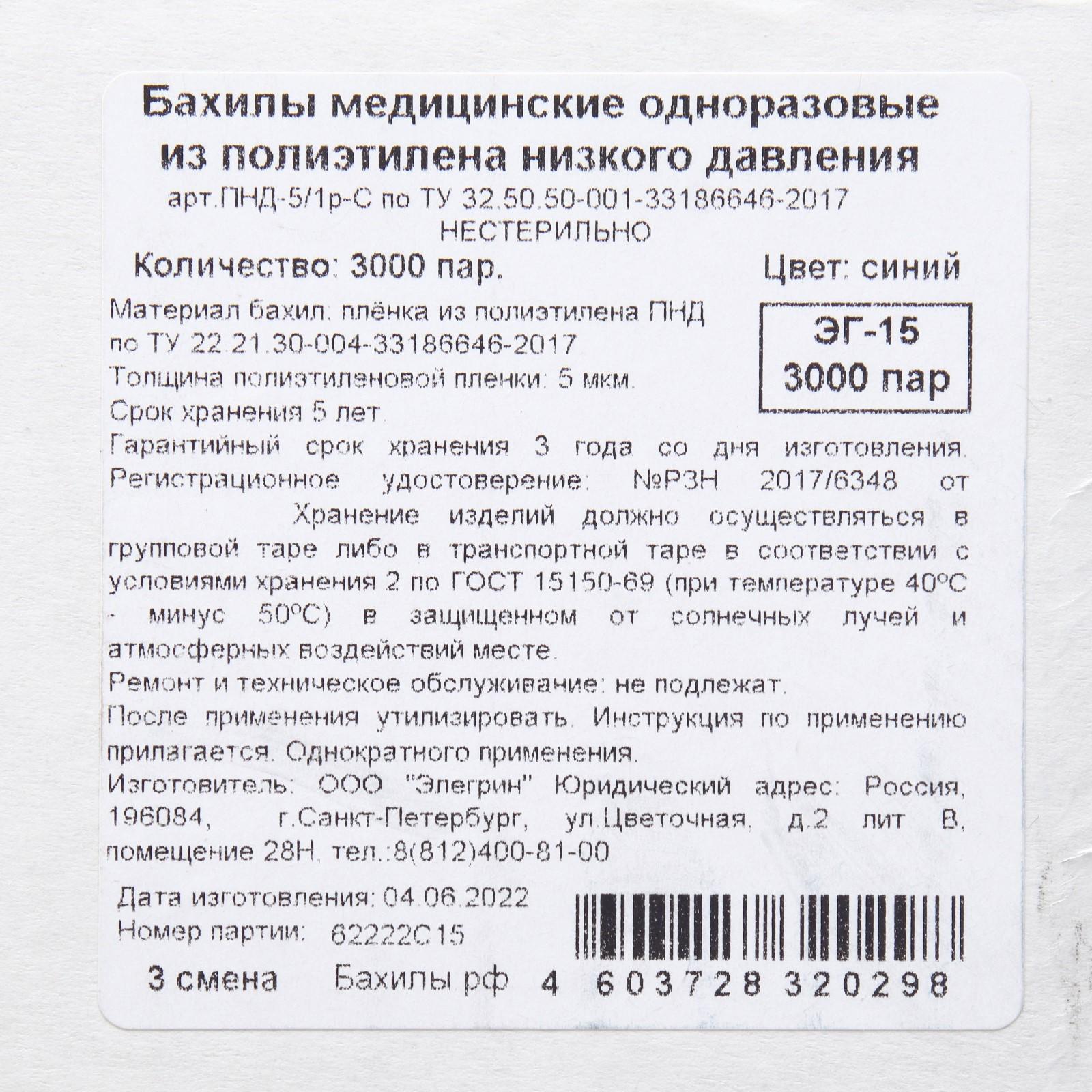 Бахилы медицинские Elegreen Эконом Лайт, синие, одноразовые, нестерильные, изготовлены из высококачественного хлорполиэтилена или полиэтилена. Обладают высокой износоустойчивостью.