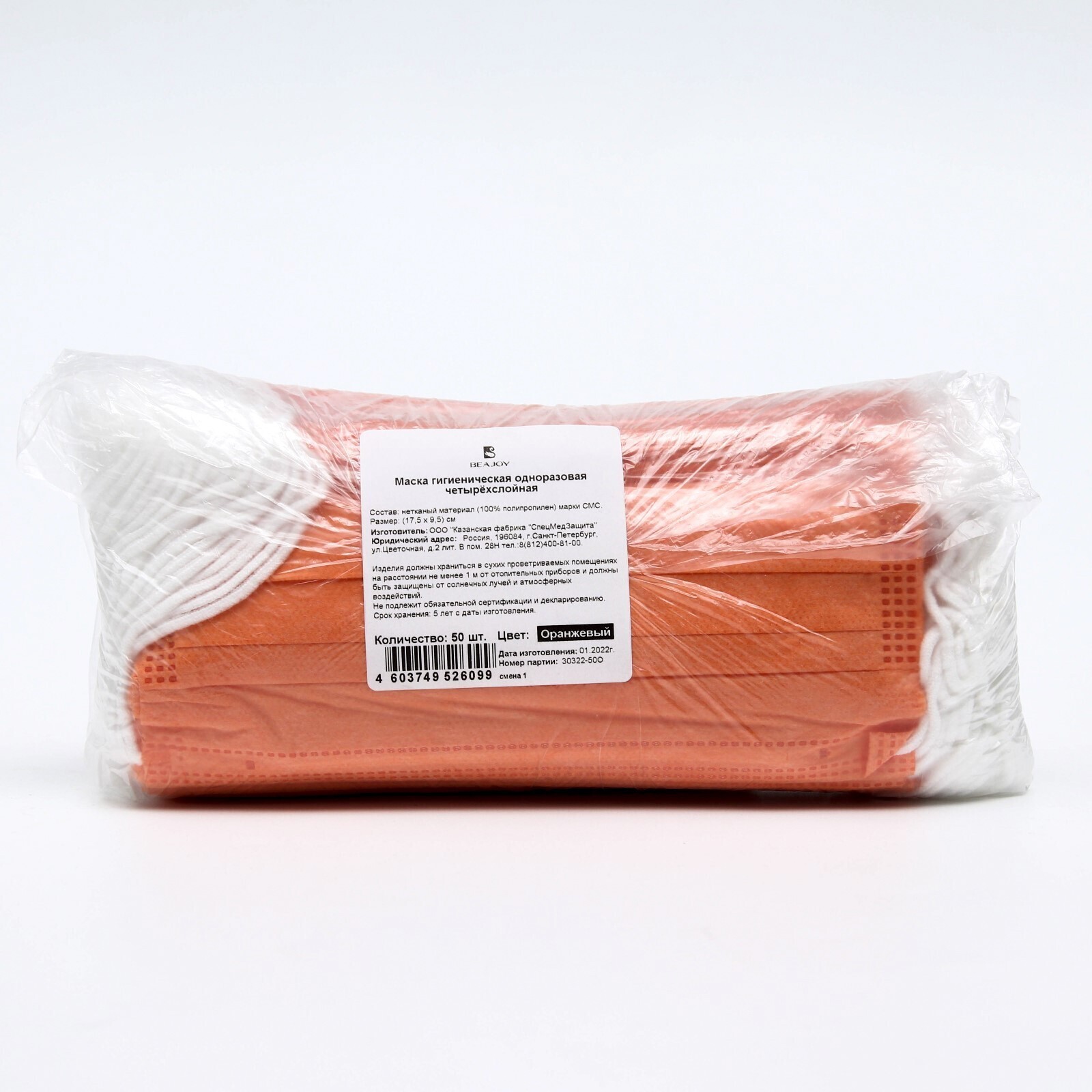 Маска четырехслойная оранжевый цвет