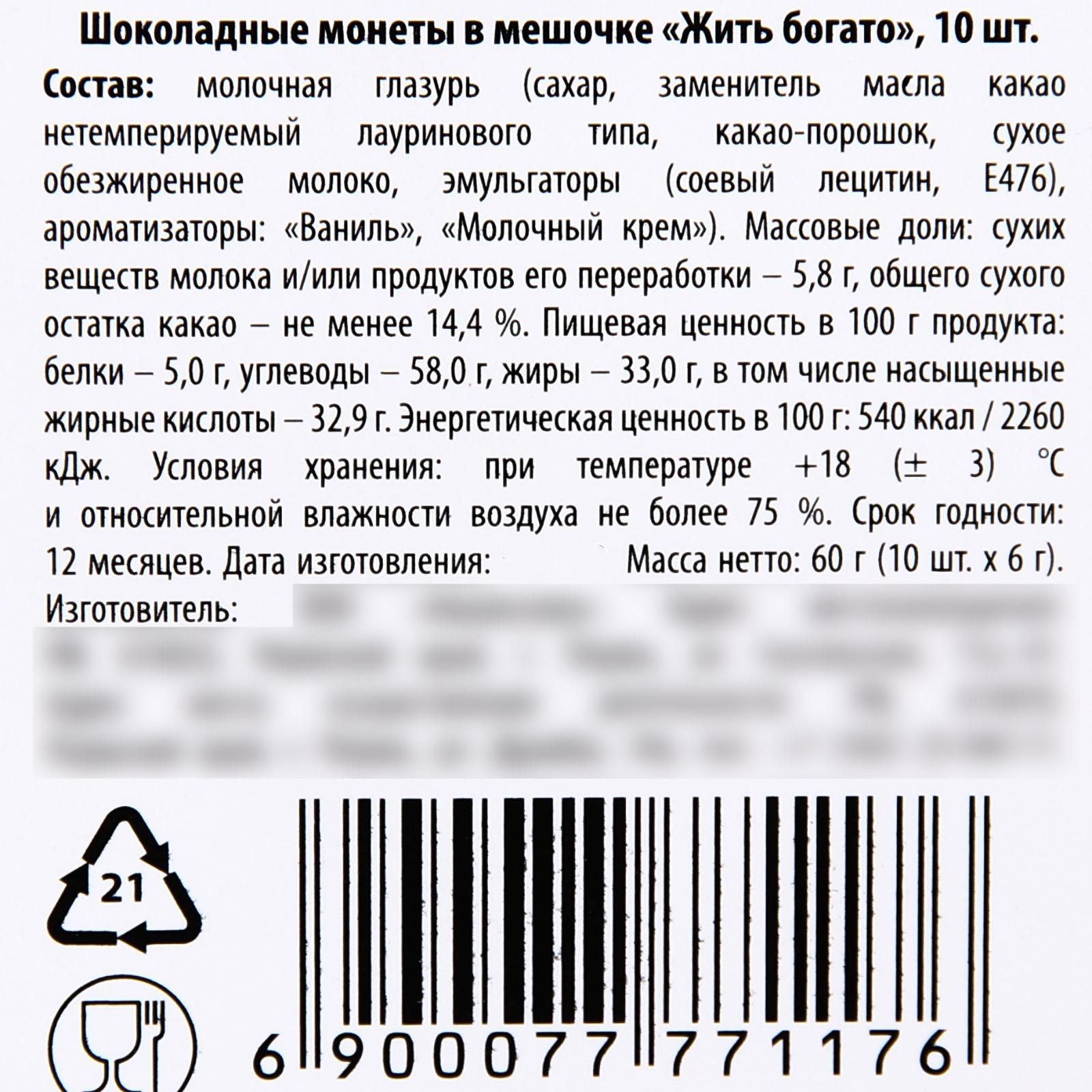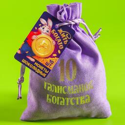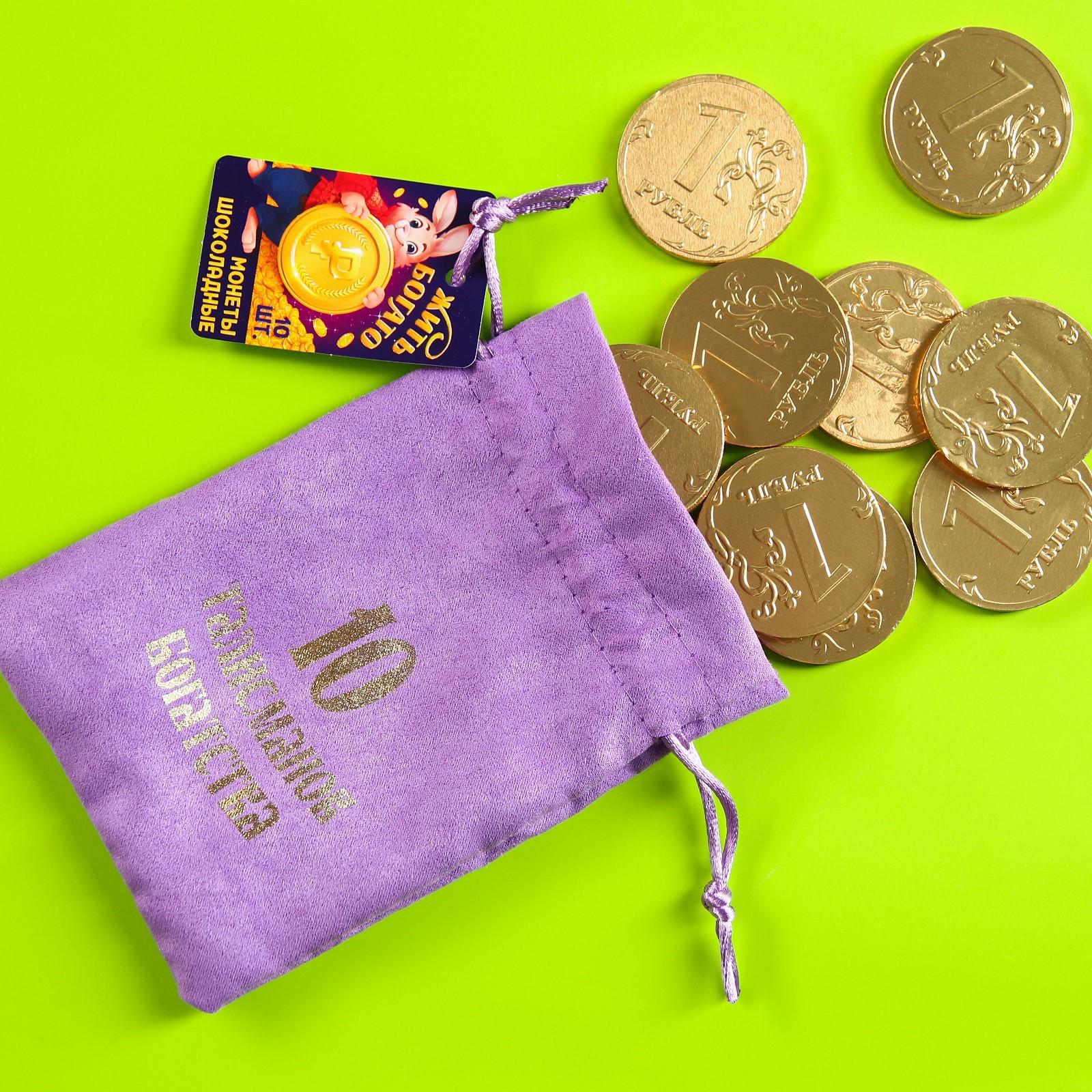 Шоколадные монеты «Жить богато» в мешочке, 10 шт. х 6 г.