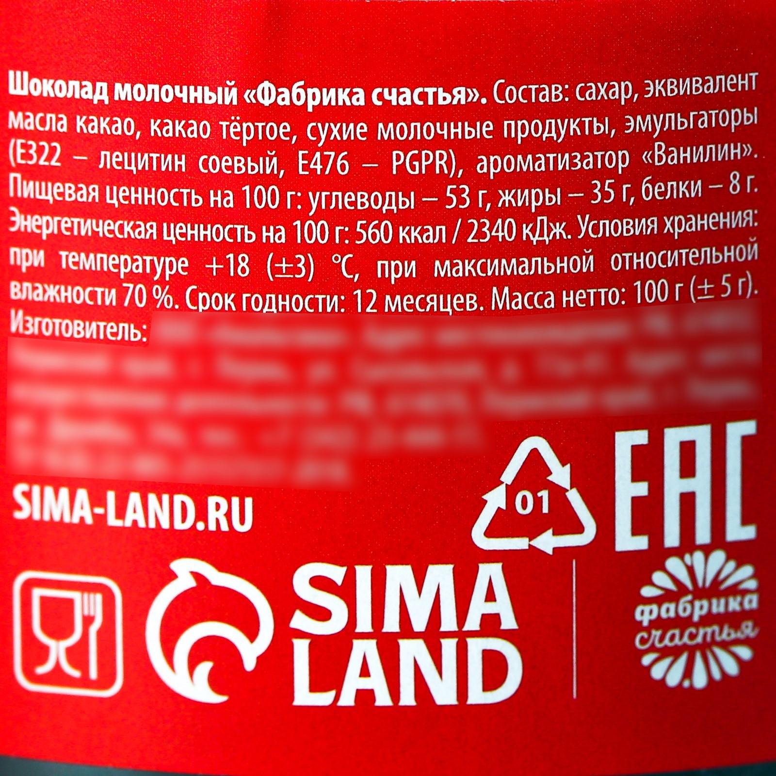 Состав: сахар, эквивалент масла какао, какао тёртое, сухие молочные продукты, эмульгаторы (Е322 – лецитин соевый, Е476 – PGPR), ароматизатор «Ванилин».