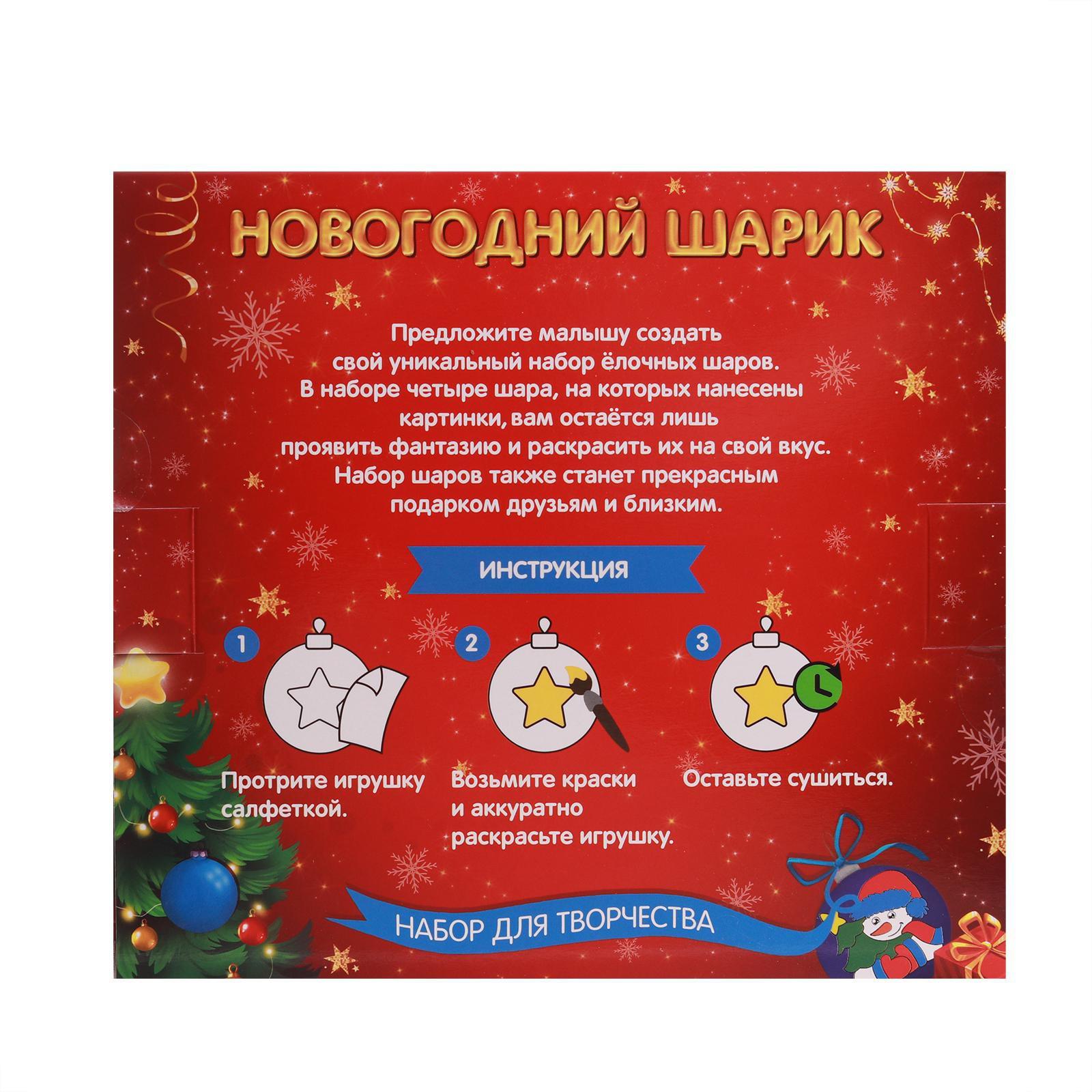 Новогоднее ёлочное украшение под раскраску «Счастливого Нового года», 4 шт, d=5.5 см