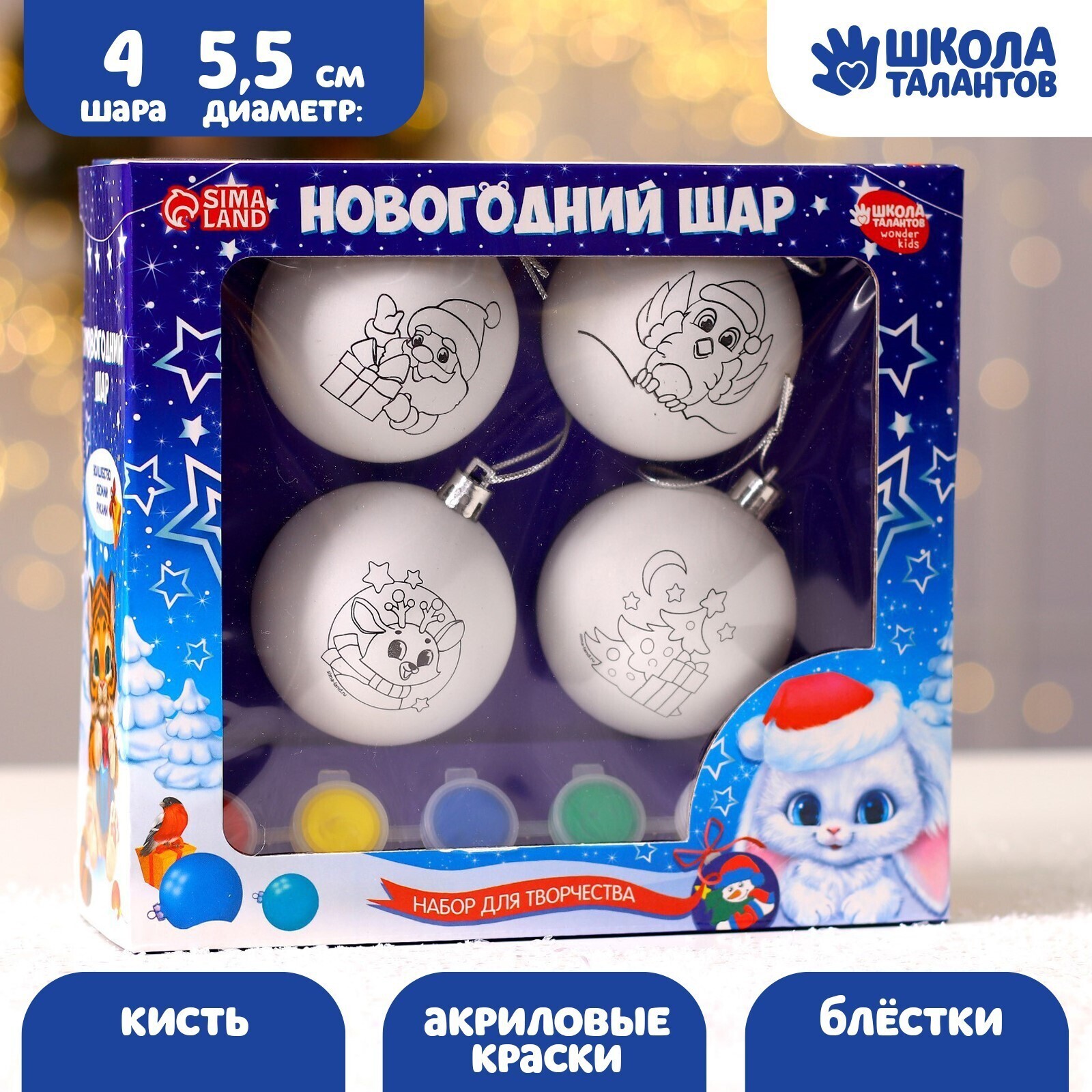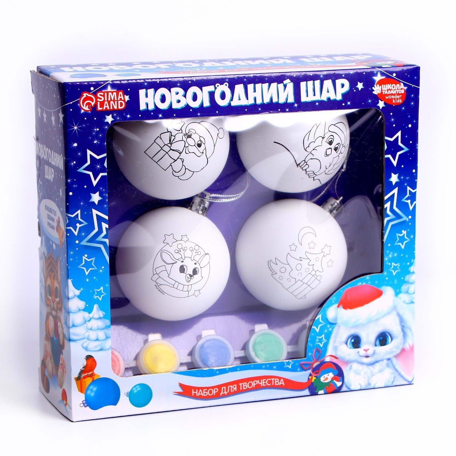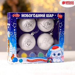Набор для творчества. Ёлочные шары под раскраску «Новогодняя история» + краски, набор 4 шт