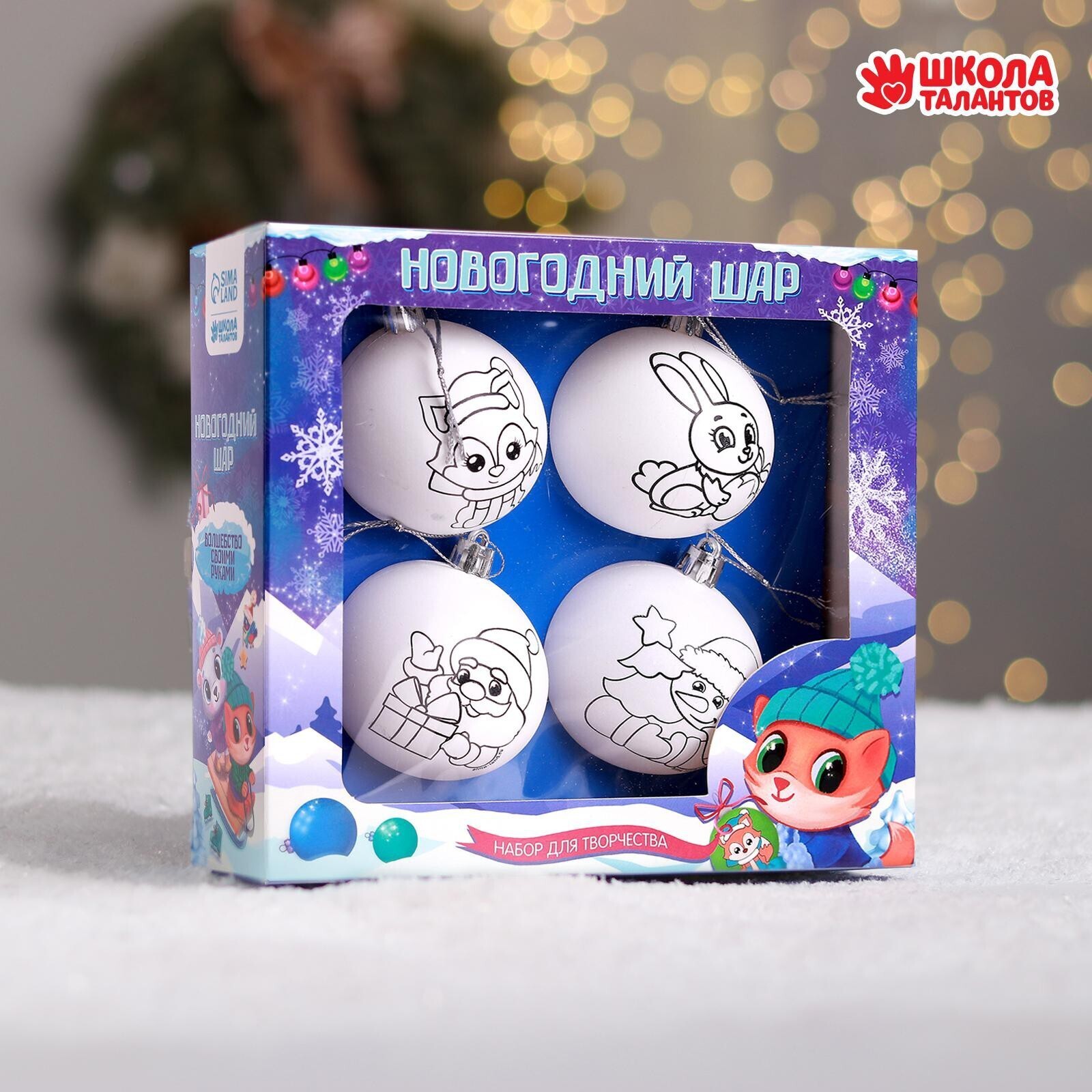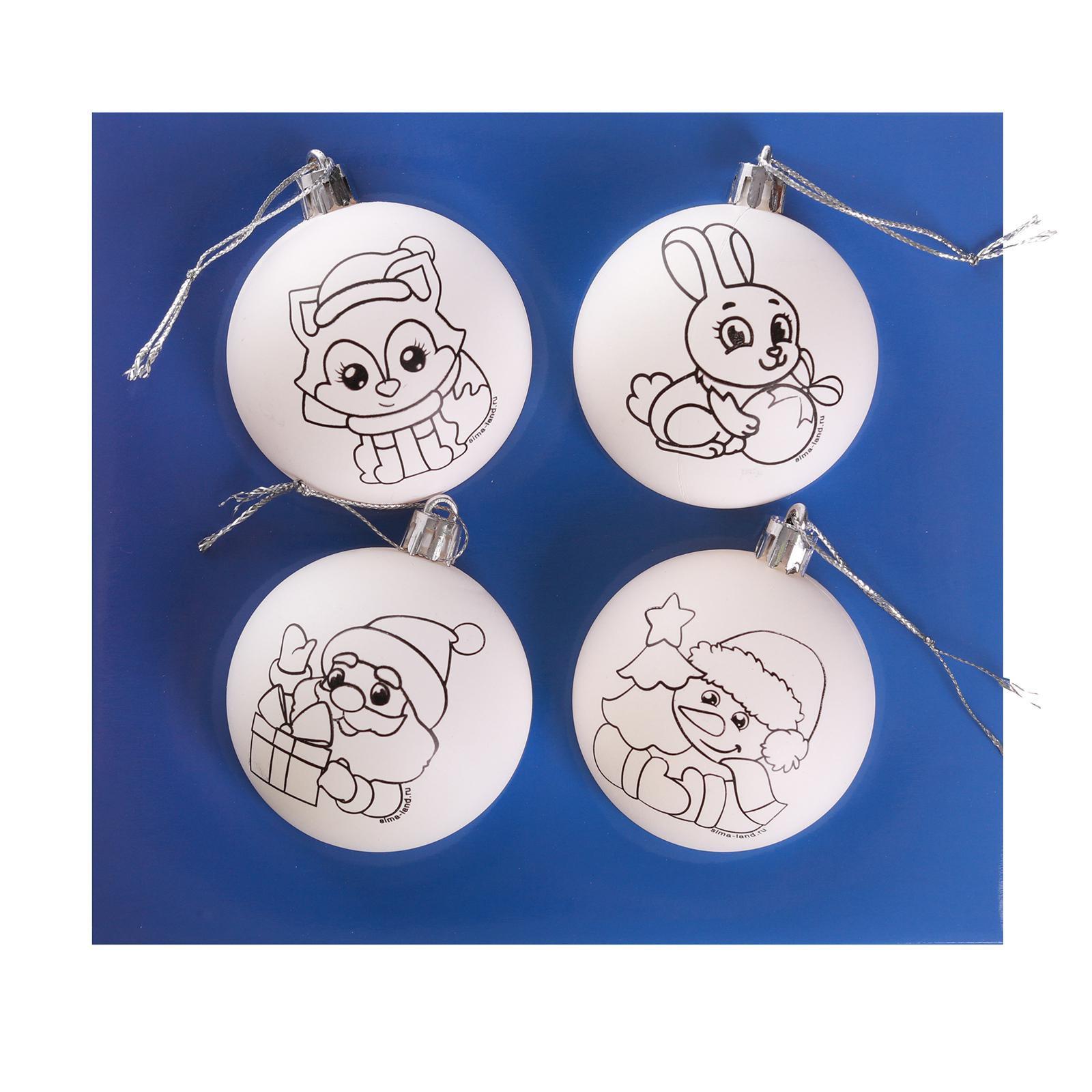 Новогоднее ёлочное украшение под раскраску «С Новым годом!», набор 4 шт, d=5.5 см