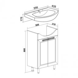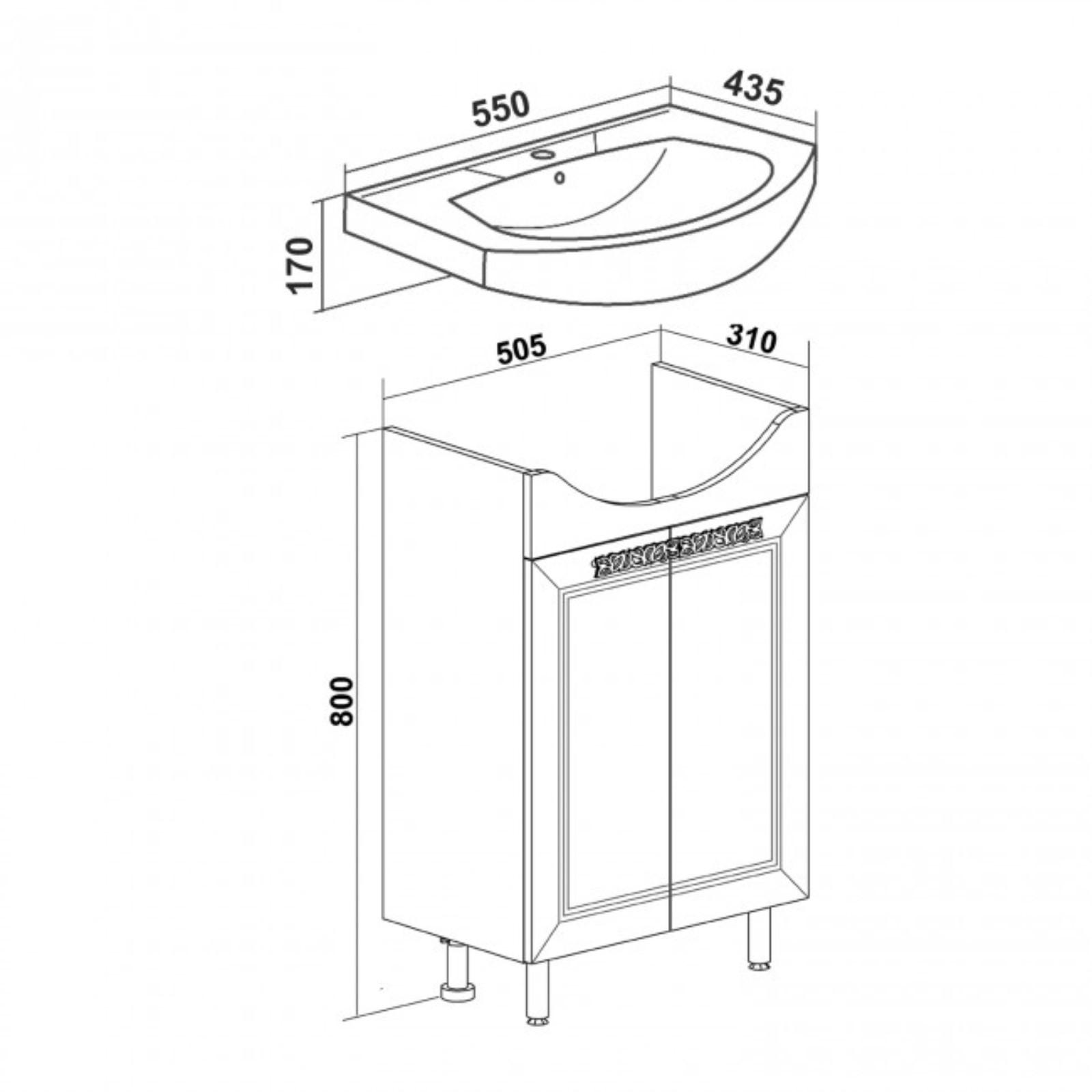 Тумба "Монро 55" с раковиной "Элеганс 55" 44 х 55 х 80 см