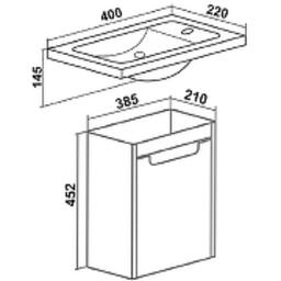 Тумба "Микра 40" подвесная белая с раковиной "Como 40" 22 х 40 х 45 см