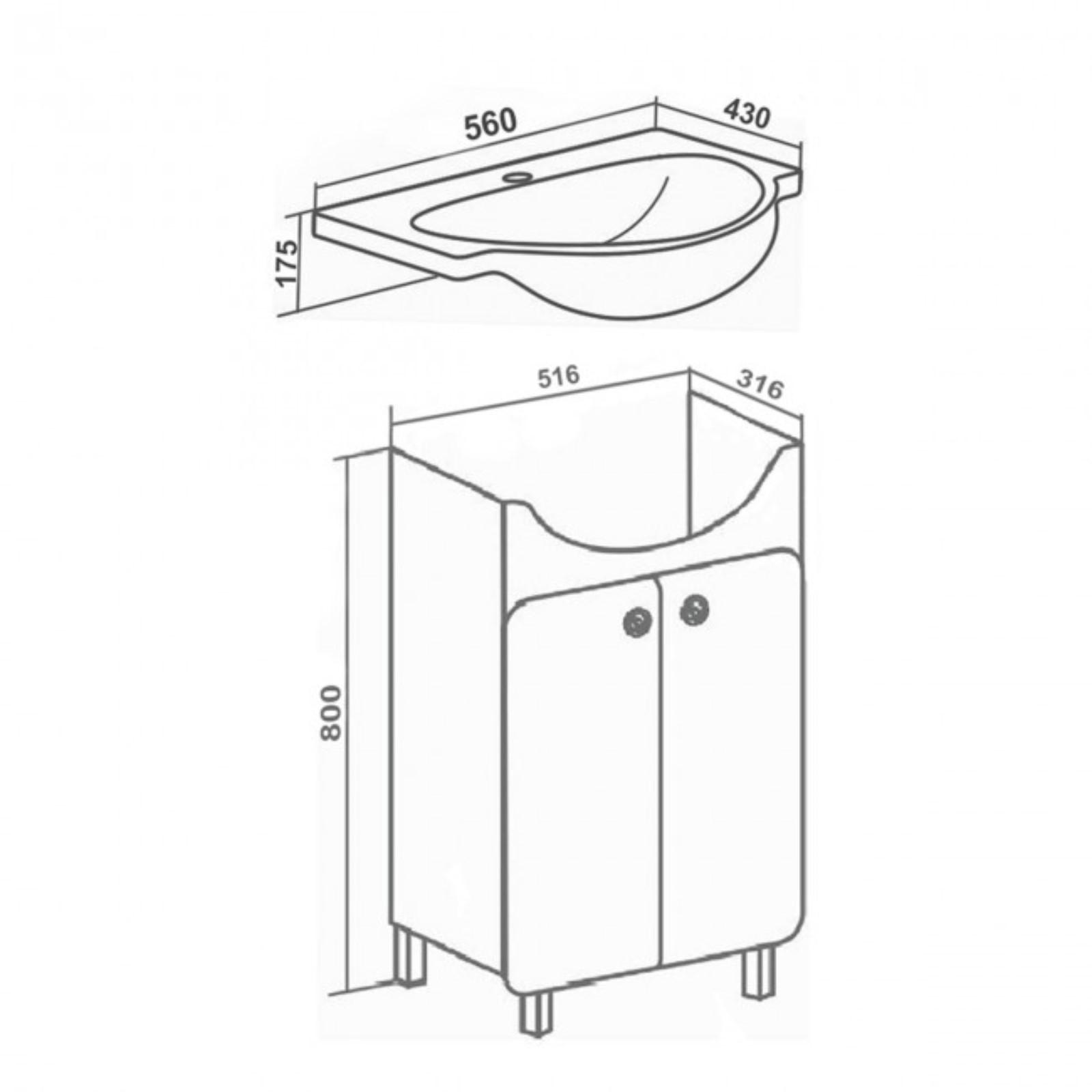 Тумба "Капри 55" белая, с раковиной "Линда 55"