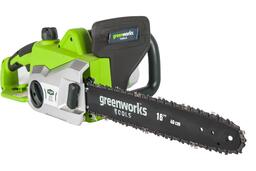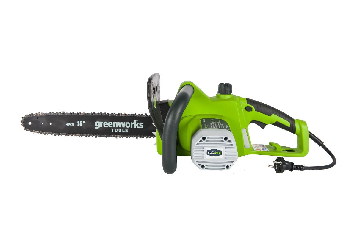 GREENWORKS GCS1840 – сетевая цепная пила для обработки пиломатериалов на частном участке. Двигатель мощностью 1800 Вт. Подойдёт для подравнивания деревьев, обработки стройматериалов, заготовки дров, валки небольших деревьев. Запитывается от бытовой сети 220 В.