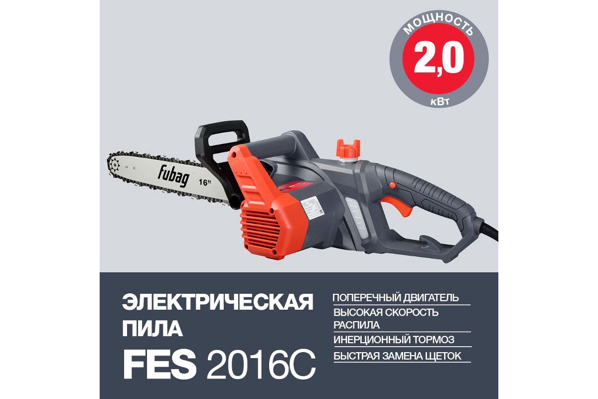Электропила цепная Fubag FES2016С 2кВт шина 16''/40см попереч. двигатель