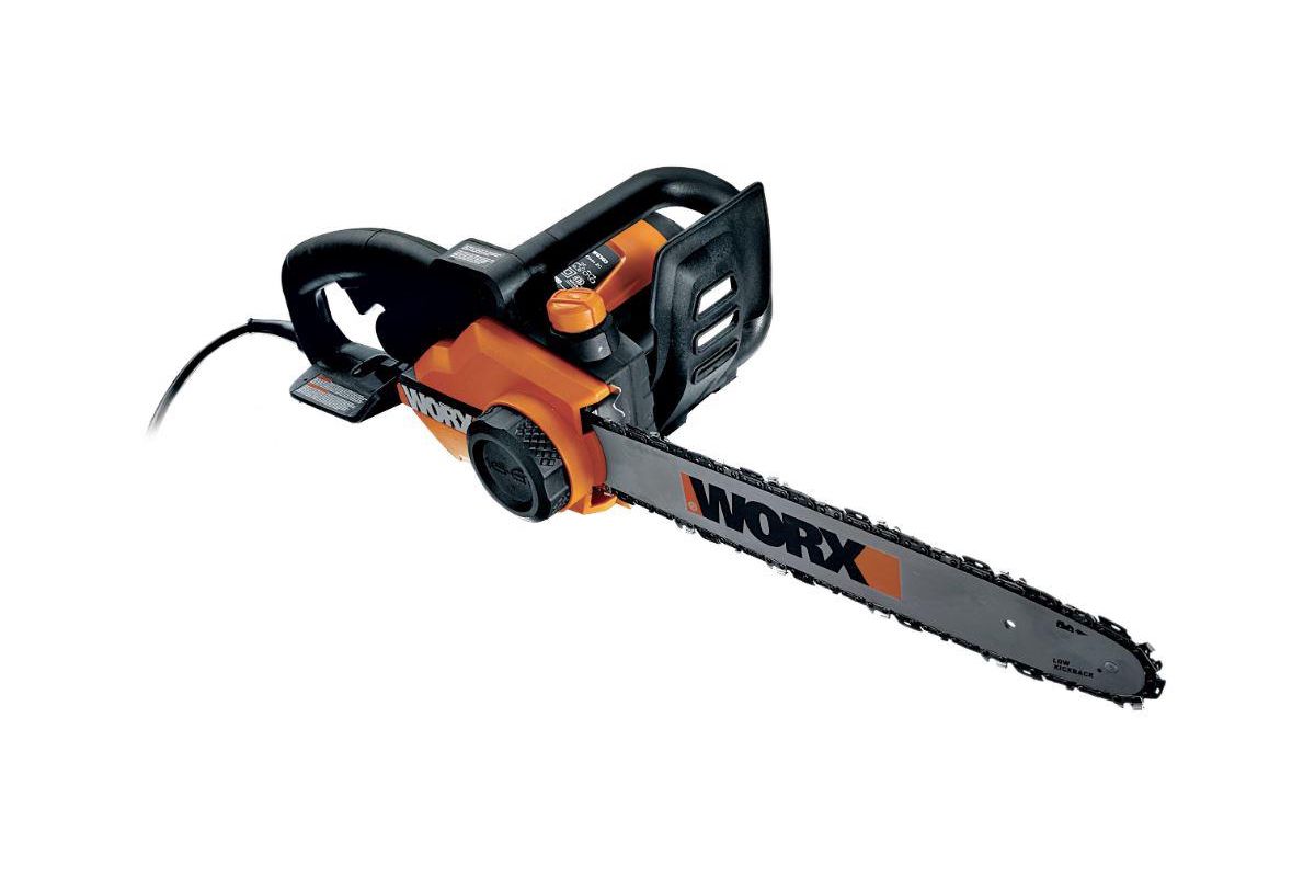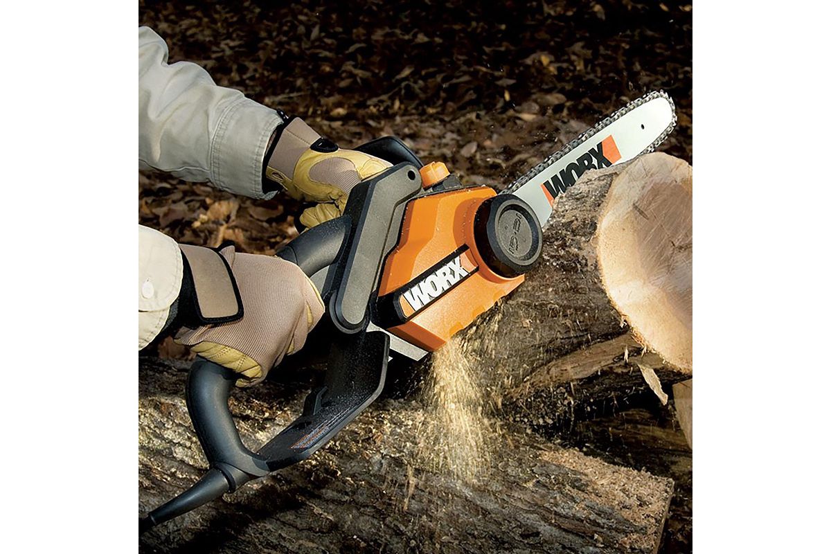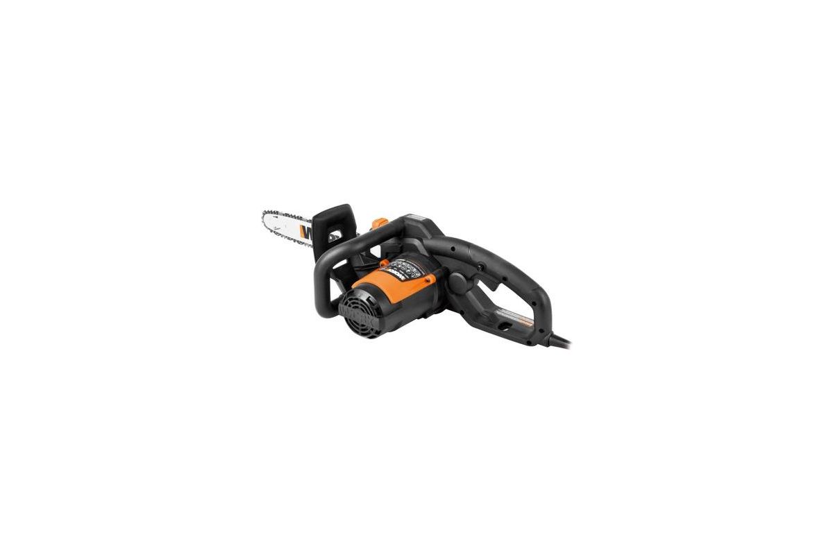 Электрическая цепная пила WORX WG303E пригодится для распиловки стволов, заготовки дров и обрезки сучьев на приусадебном участке. Оснащена двигателем мощностью 2000 Вт и шиной длиной 40 см. Работает от бытовой электросети.