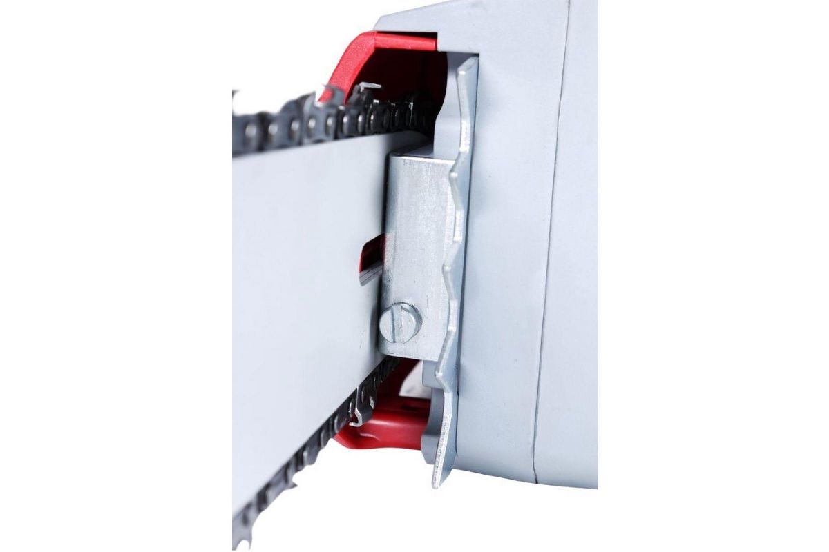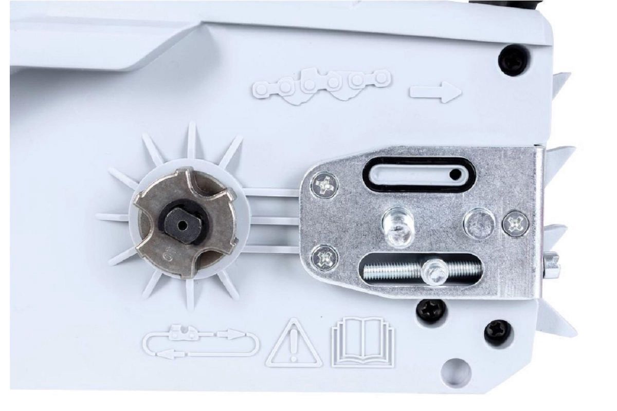 - Безопасность. Автоматический тормоз цепи в виде щитка обеспечивает безопасность работы с электропилой, в первую очередь, защиту ваших рук;