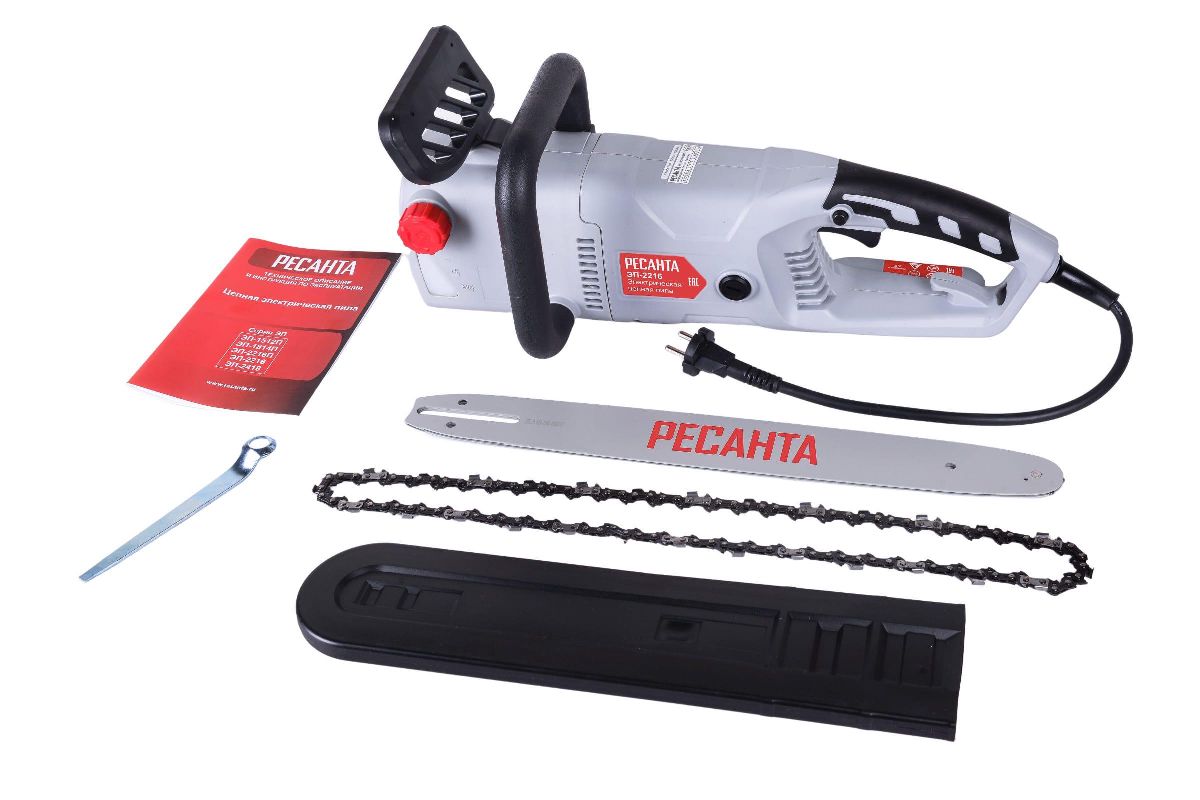 Электропила служит для лёгких и средних работ: распиловка бревен, валка садовых деревьев, обрезка сучьев. Благодаря обрезиненной рукоятке держать такой агрегат в руках удобно и комфортно. Привод цепи осуществляется за счет электродвигателя, который работает от сети переменного тока 220В.