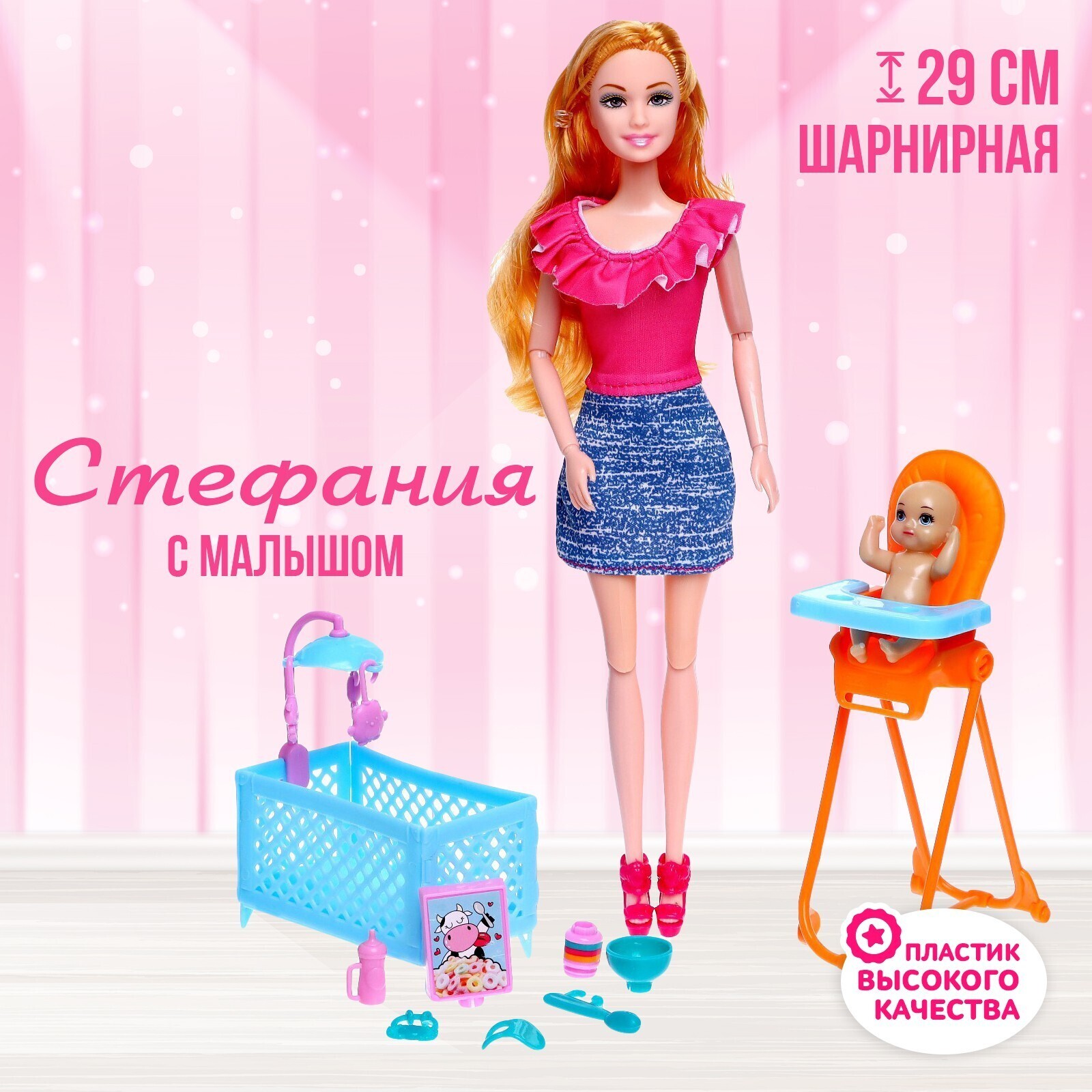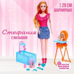Кукла-модель шарнирная «Мама Стефания» с малышом, мебелью и аксессуарами, МИКС