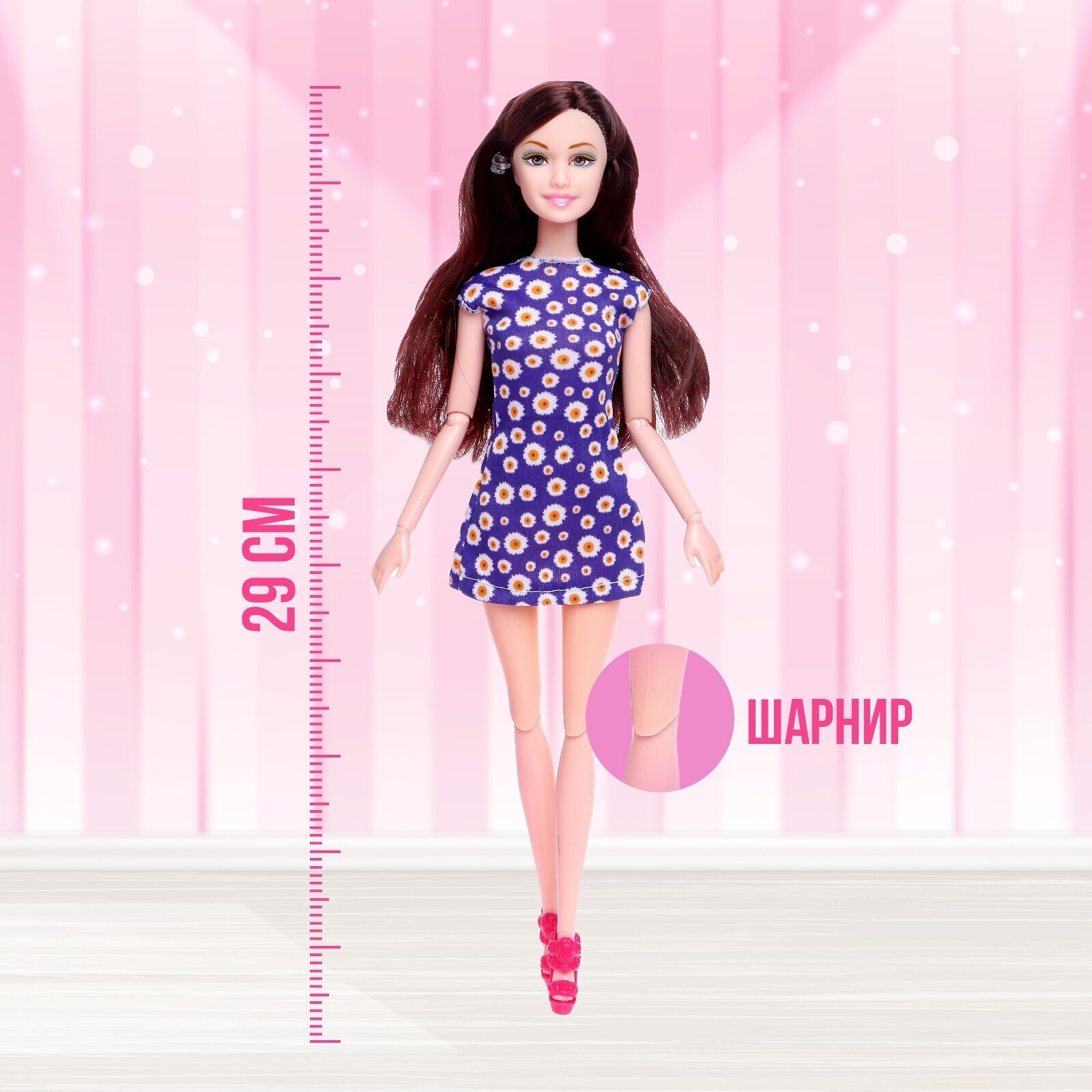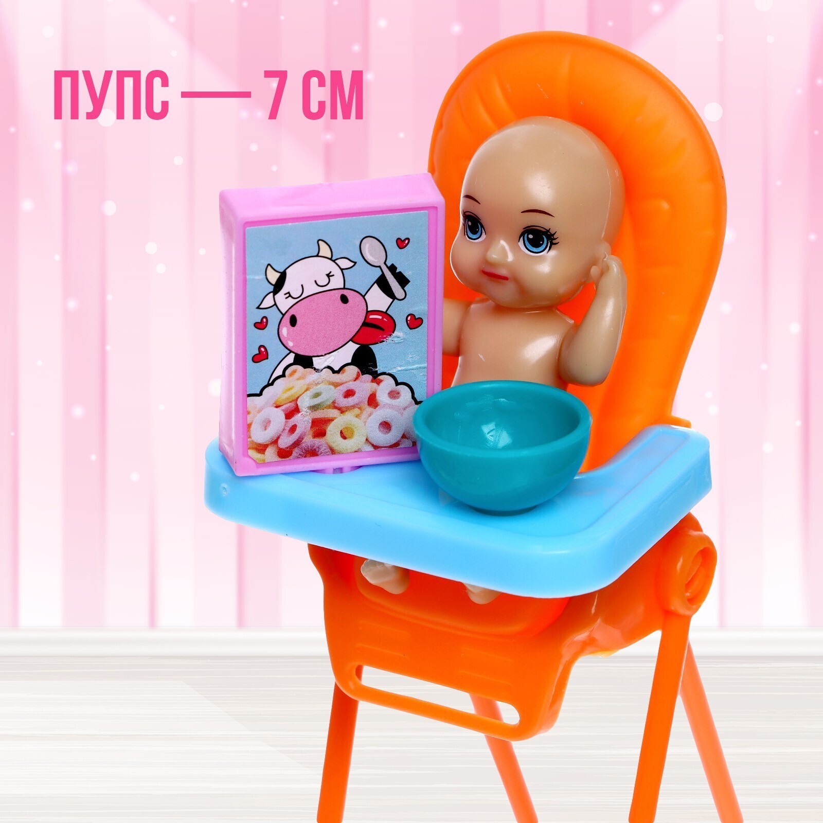 Высота куколки — 29 см, пупса — 7 см.