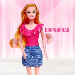 У куклы-мамы длинные волосы. Это позволит сделать ей самые разнообразные модные причёски. Придумывайте образы, создавайте наряды, и ваша куколка будет самой красивой на свидании, прогулке или встрече с подружками. Игрушка шарнирная, что позволяет придавать ей любую позу.