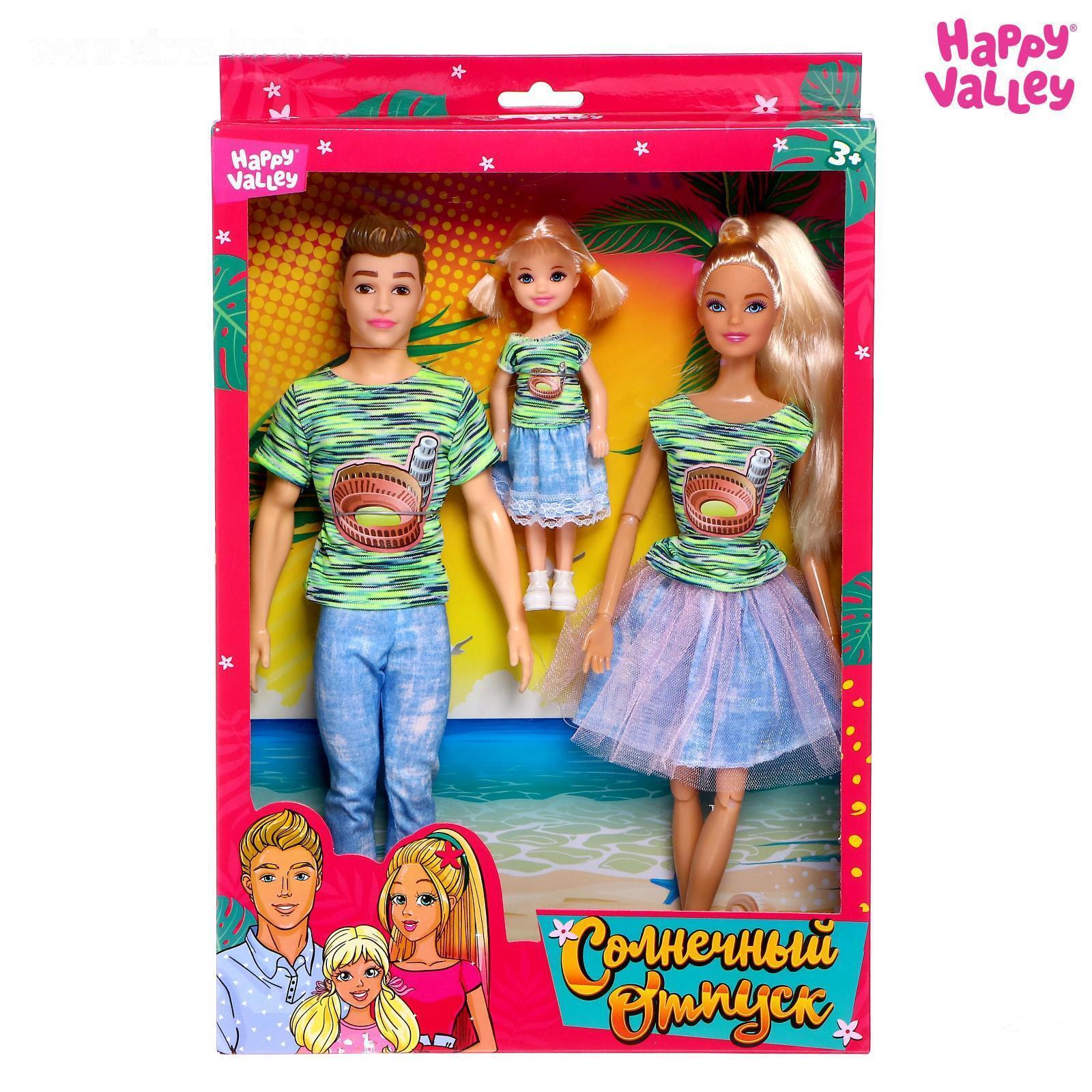 Порадуйте свою дочку целой кукольной семьёй. В наборе есть кукла-мама шарнирная, кен не шарнирный и дочка. Ваша девочка с удовольствием подружится с куколками, будет о них заботиться и осваивать социальные роли и модели поведения. Высота куколки-мамы — 29 см, куклы-папы — 29,5 см, куколки-девочки — 13,5 см.