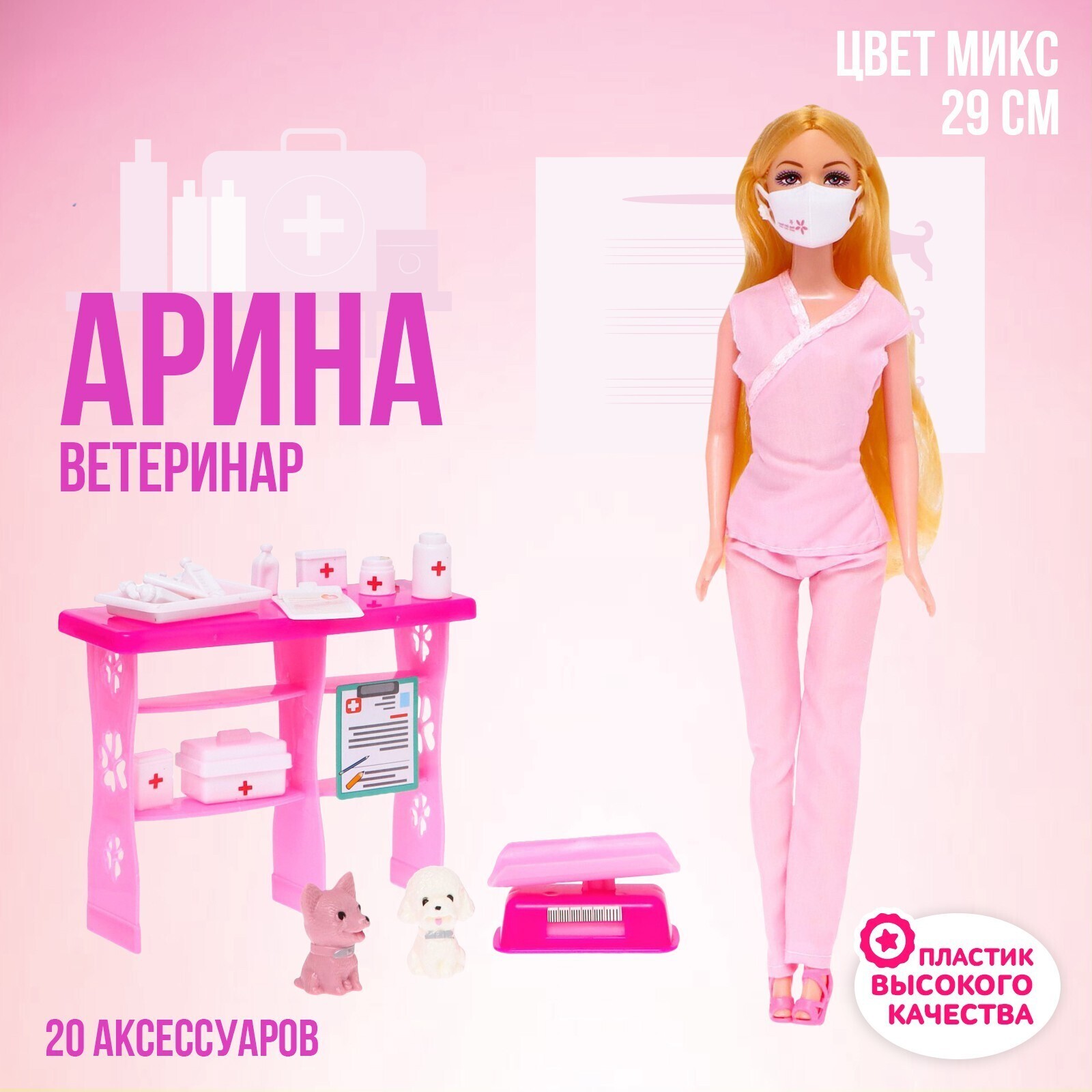 Кукла-модель «Ветеринар Арина», с питомцами, мебелью и аксессуарами, МИКС