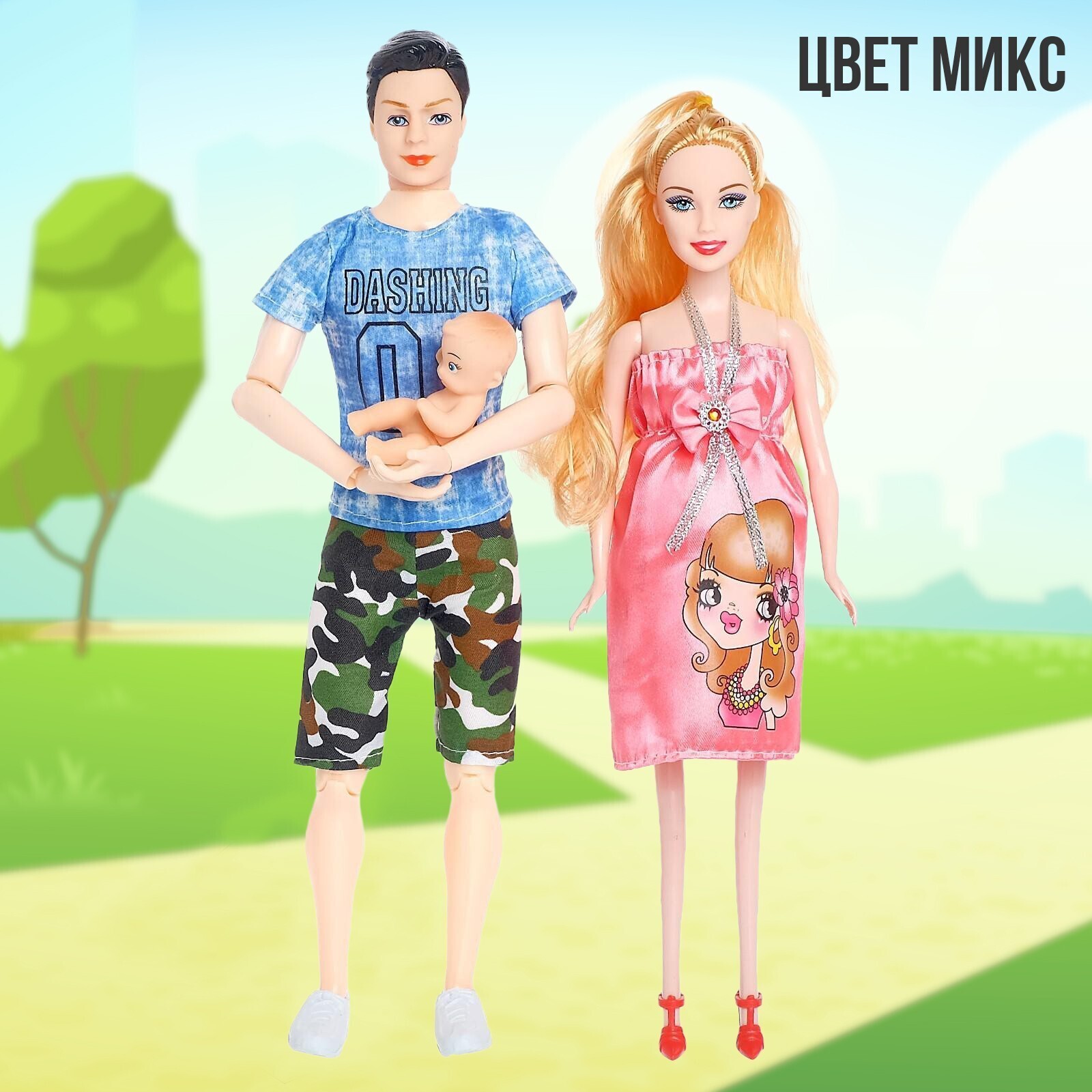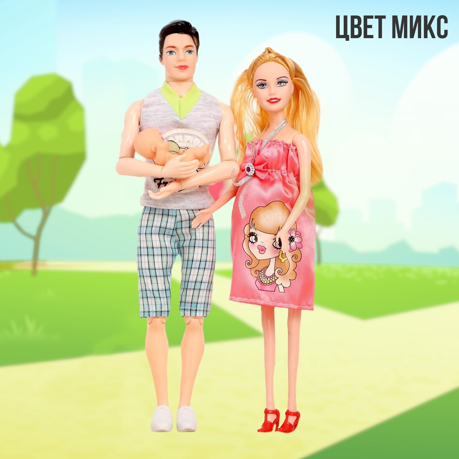 Кукла-модель беременная в платье с младенцем и Алексом-шарнирным, МИКС