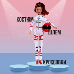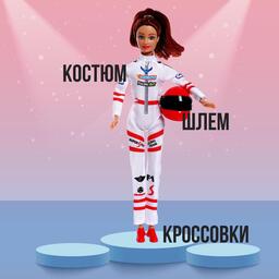 У куколки костюм настоящей гонщицы. Высота: 33 см. Костюм и шлем снимаются.