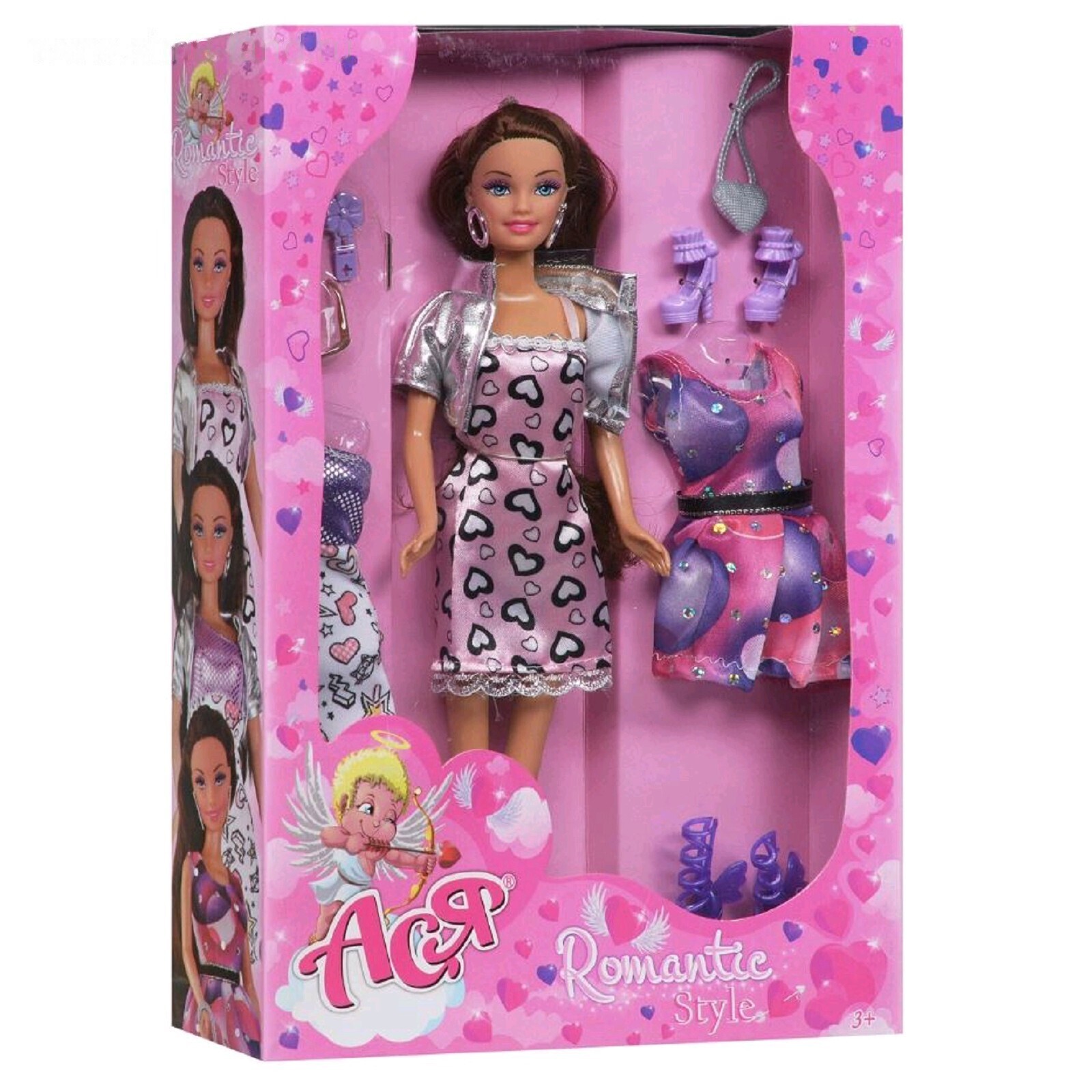 Кукла Ася — украинская сестричка куклы Барби. Красивая брюнетка с роскошными длинными волосами и нежным макияжем выглядит очень стильно в любом из своих нарядов. Укороченный декорированный пиджачок серебристого цвета прекрасно сочетается со всеми образами. Ася одета в нежно-розовое платье в сердечки. Образ дополняют серебристые серьги, сумочка и сиреневые нарядные туфли. Также в комплекте есть платье в разноцветные круги и платье в звездочки. Кроме того, в наборе есть еще 2 пары туфель, 2 пары серёг, и даже солнцезащитные очки! Переодевая куклу, комбинируя разные части гардероба и аксессуары, девочки почувствуют себя настоящими стилистами! У куклы Аси красивые густые волосы, подвижные руки и сгибаемые в коленях ноги (один щелчок).