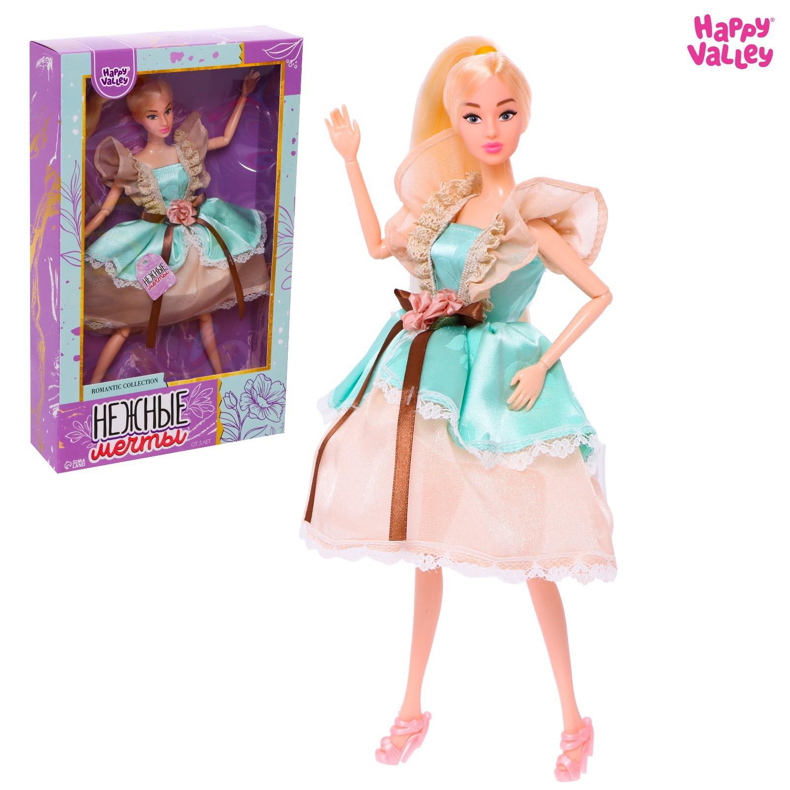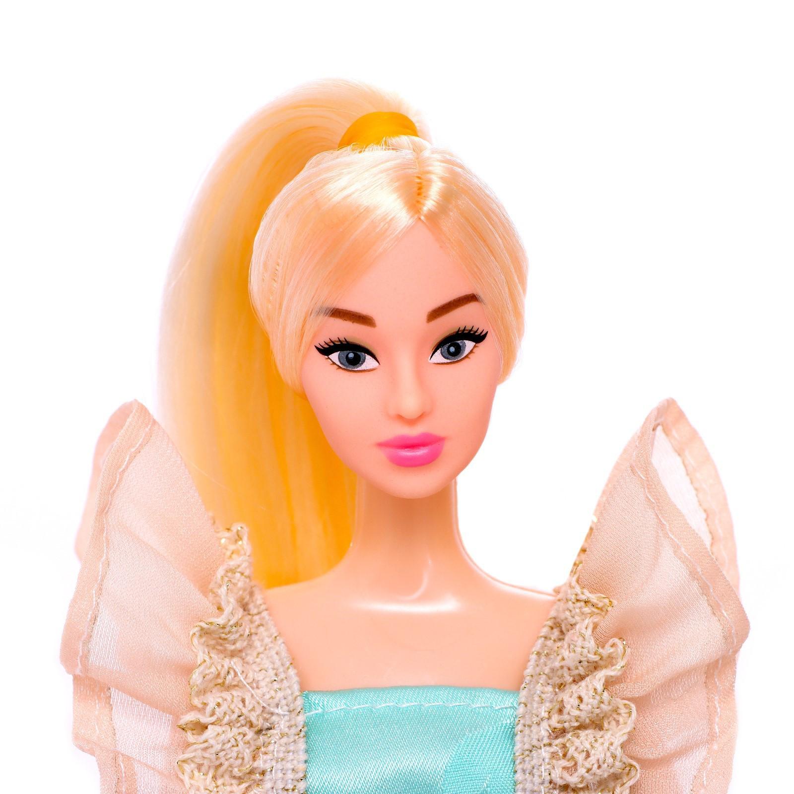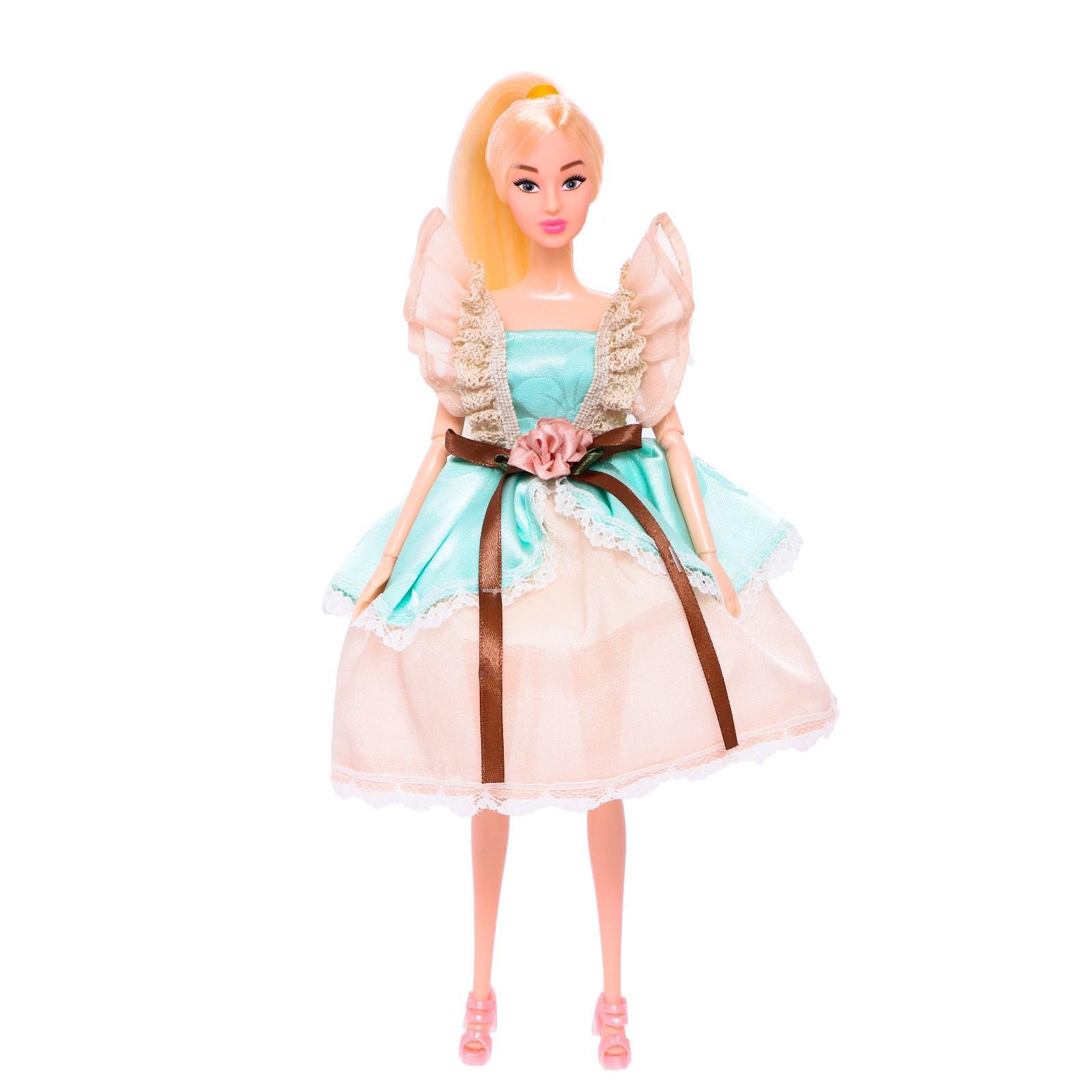 Кукла-модель «Нежные мечты» в бежево-бирюзовом платье