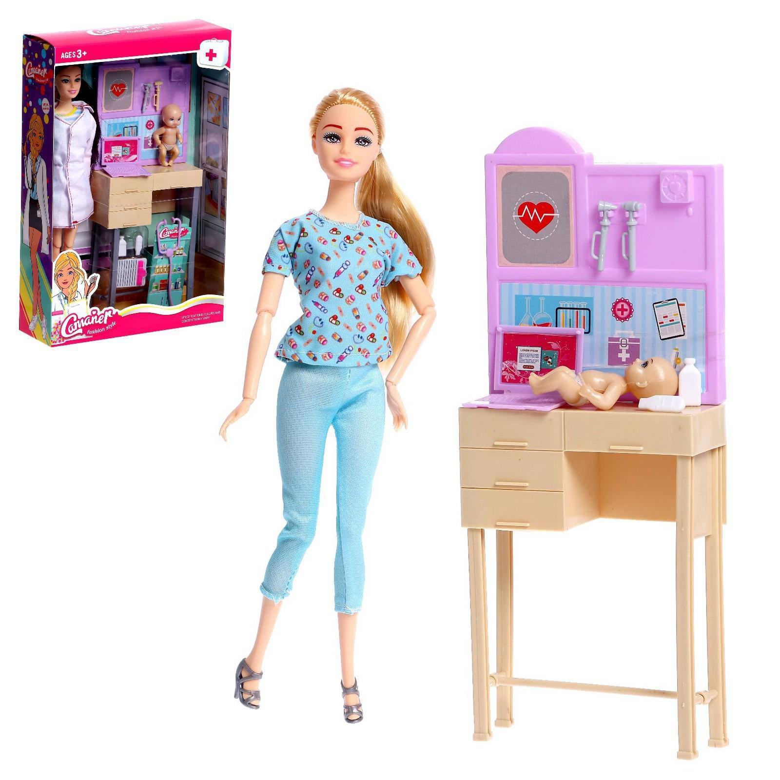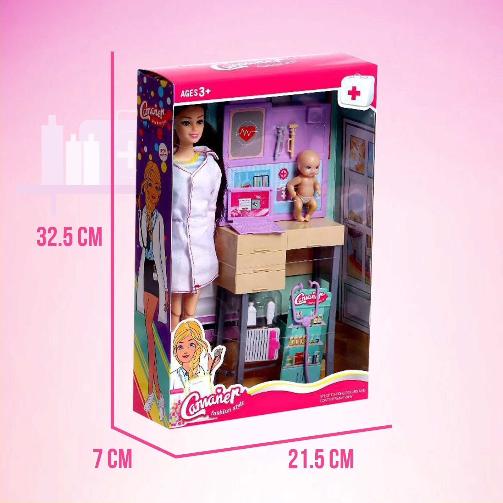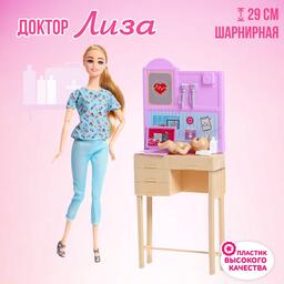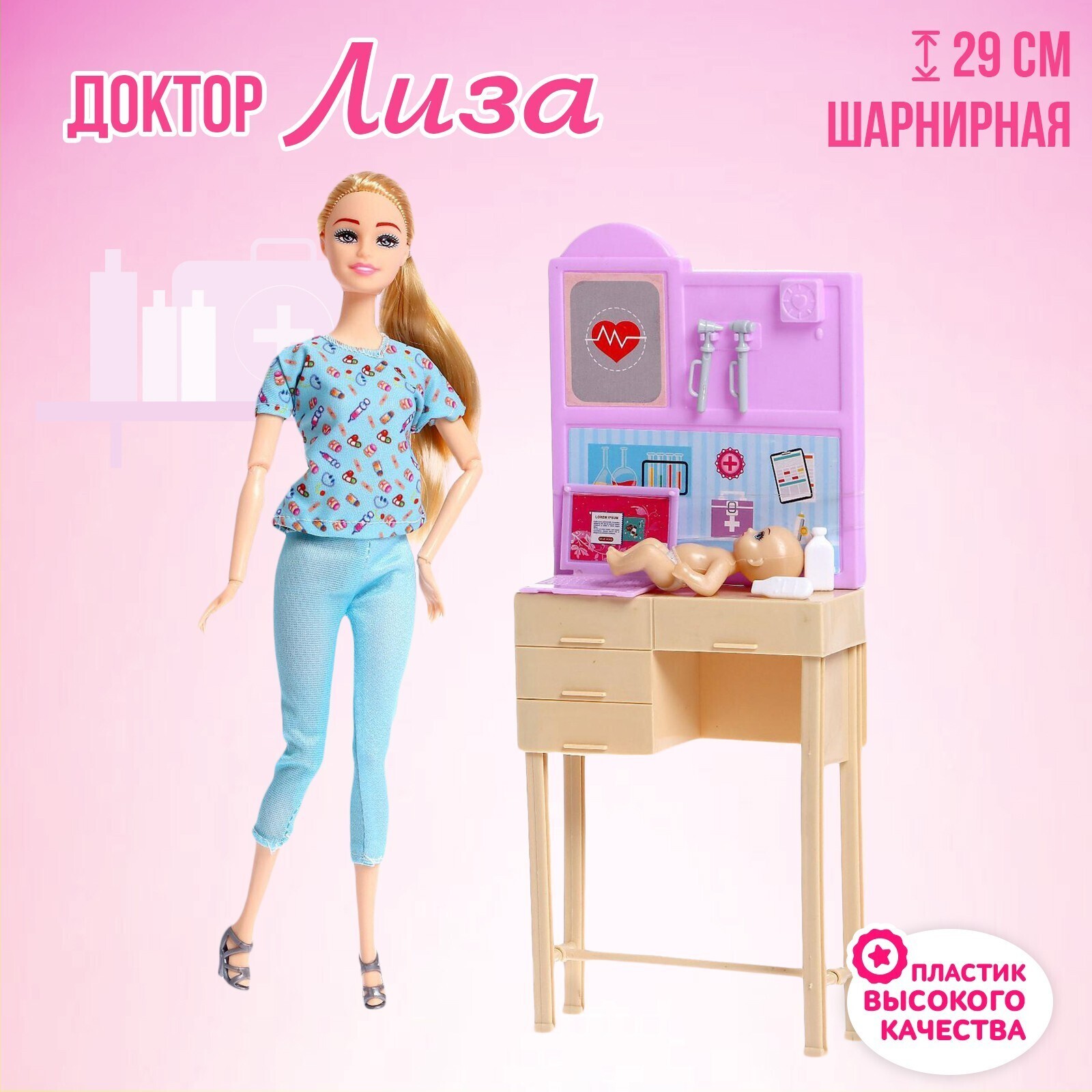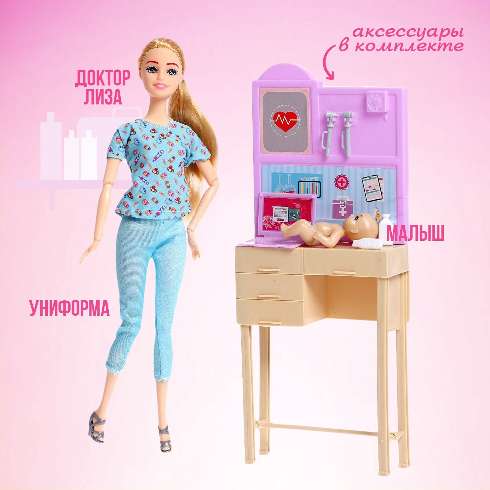 Кукла-модель шарнирная «Доктор Лиза» с малышом, мебелью и аксессуарами, в костюме