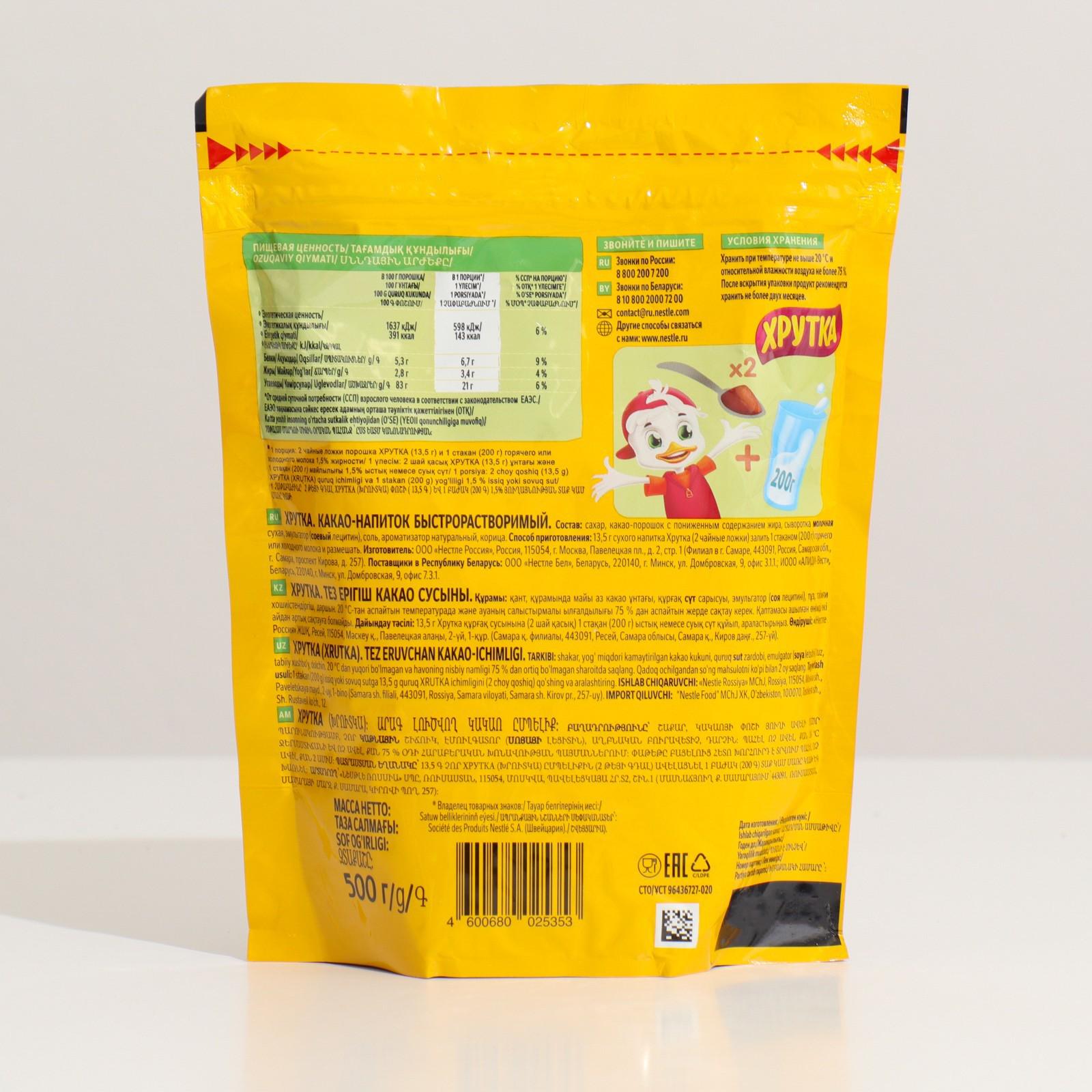 ХРУТКА Какао Напиток Пакет 500г