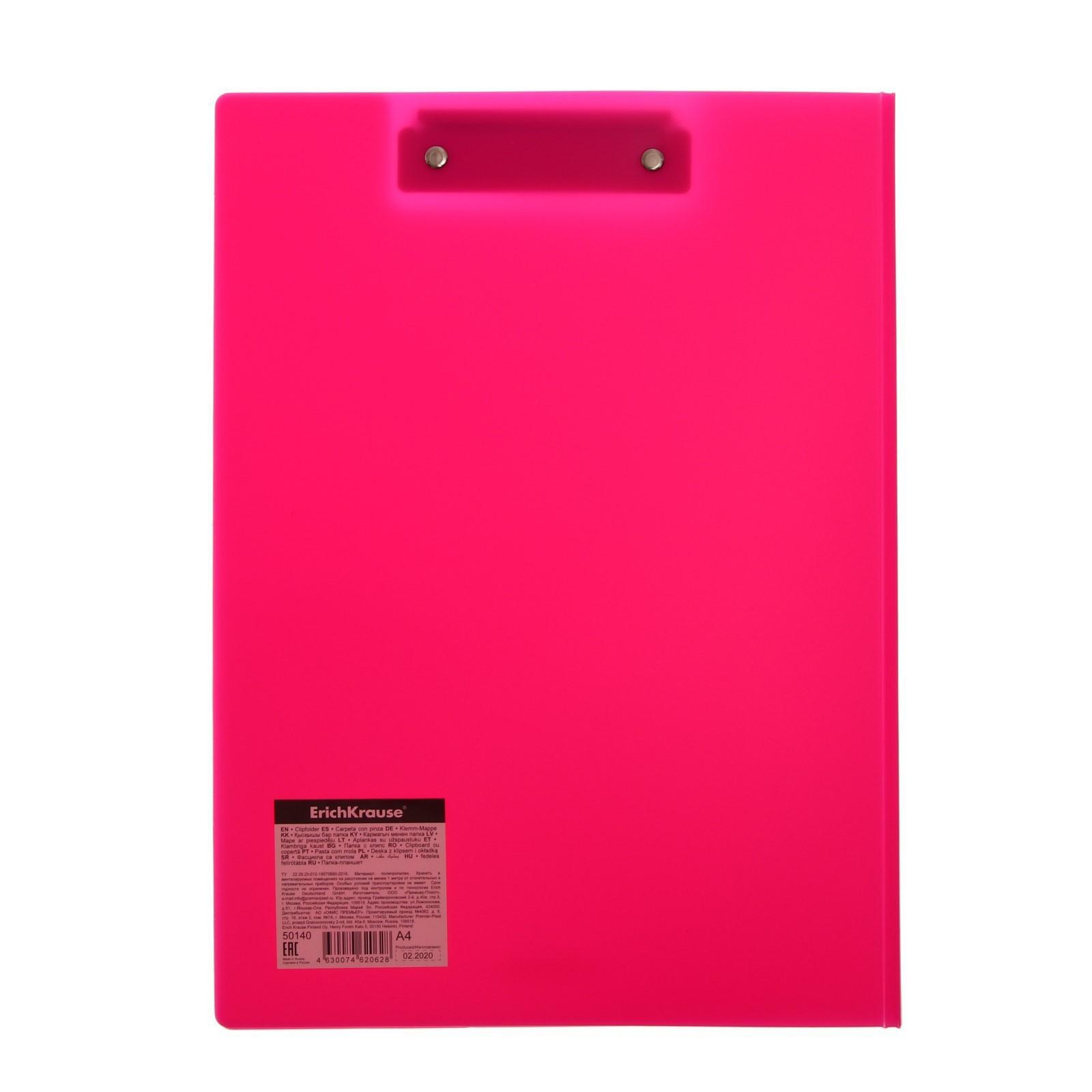 Папка-планшет с зажимом А4, 1.3 мм, ErichKrause Matt Neon, пластиковая, МИКС