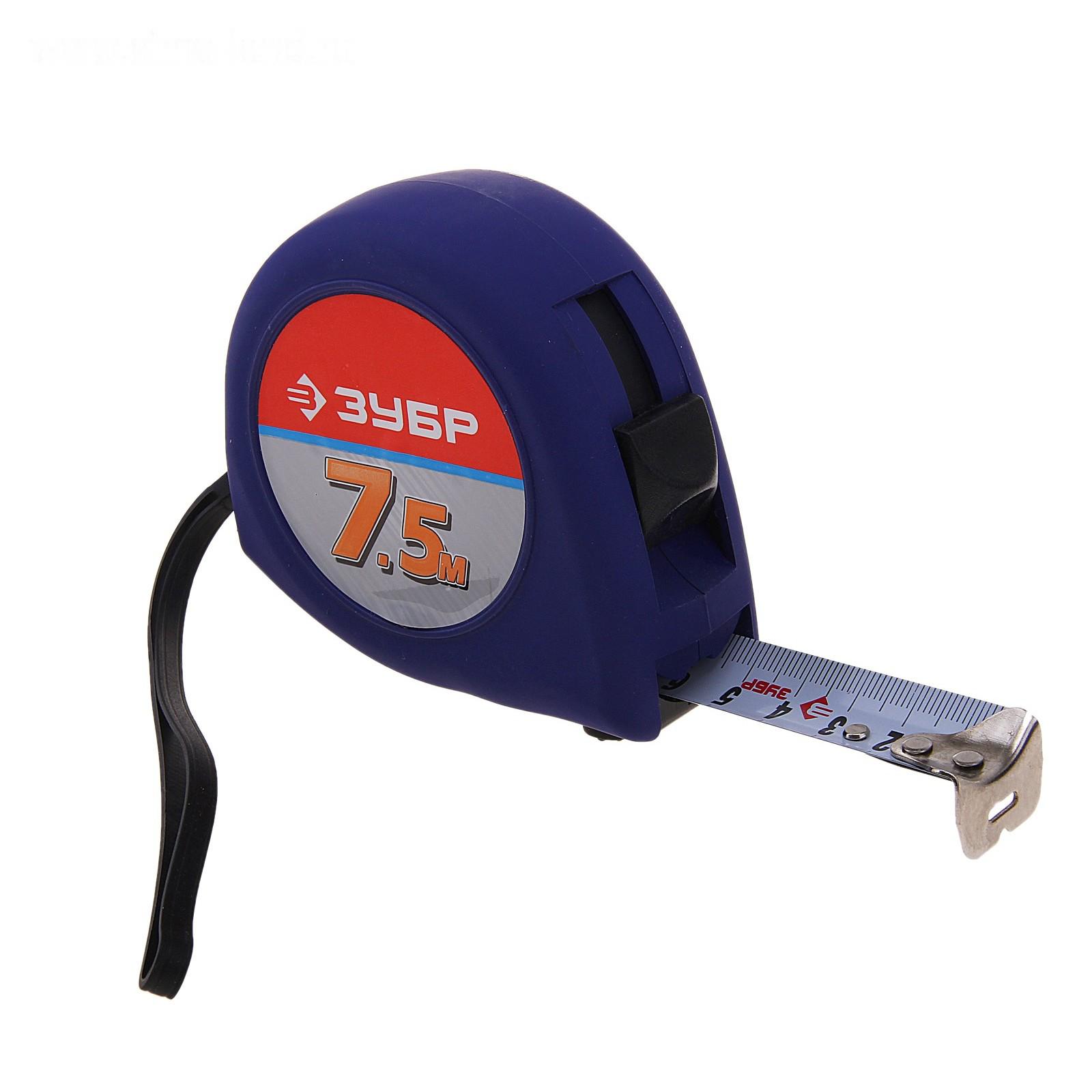 Рулетка ЗУБР "КОМФОРТ", корпус с резиновым напылением, 7,5мх25мм