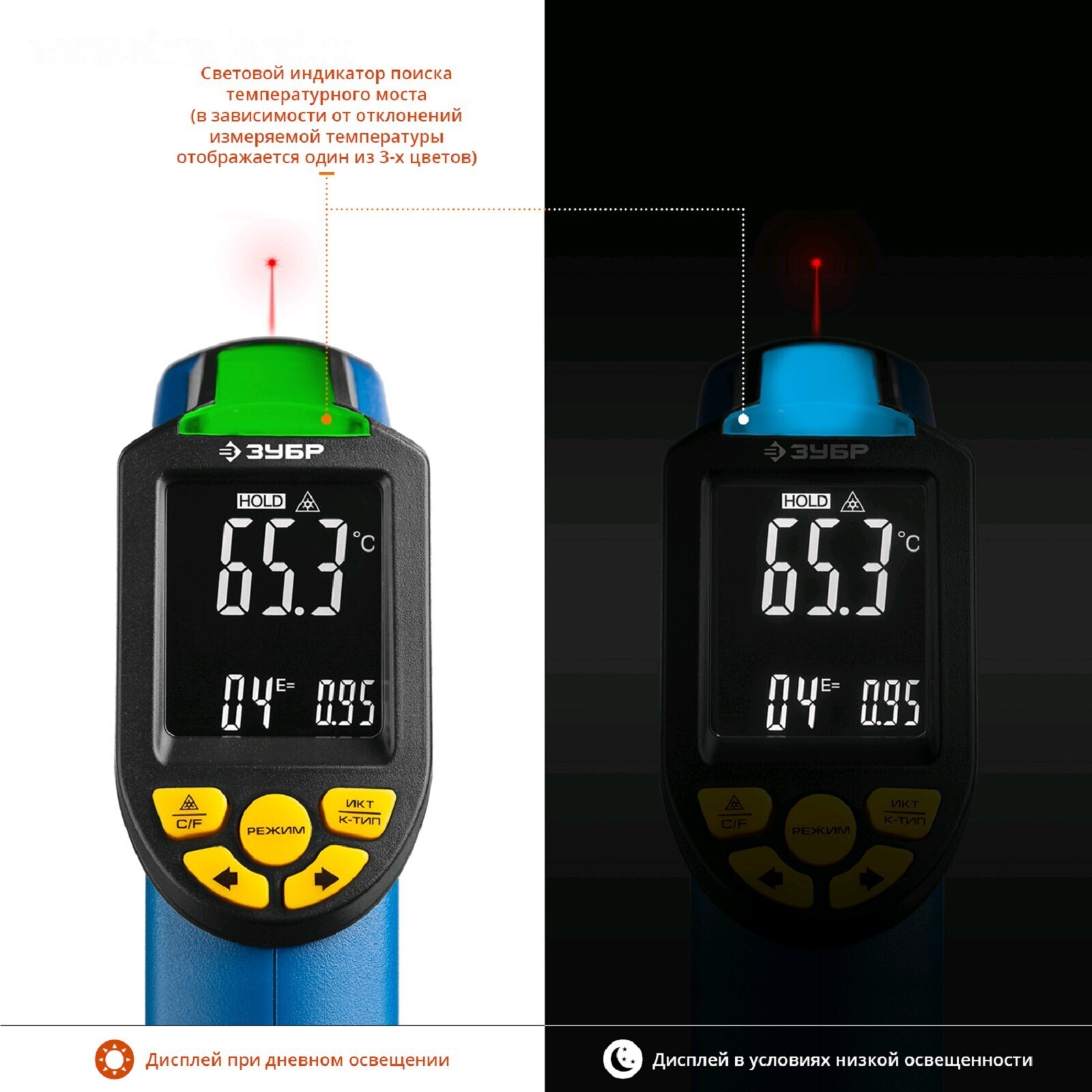 Пирометр инфракрасный "ЗУБР" 45721-650, -50°С-+650°С, точность ±2°С