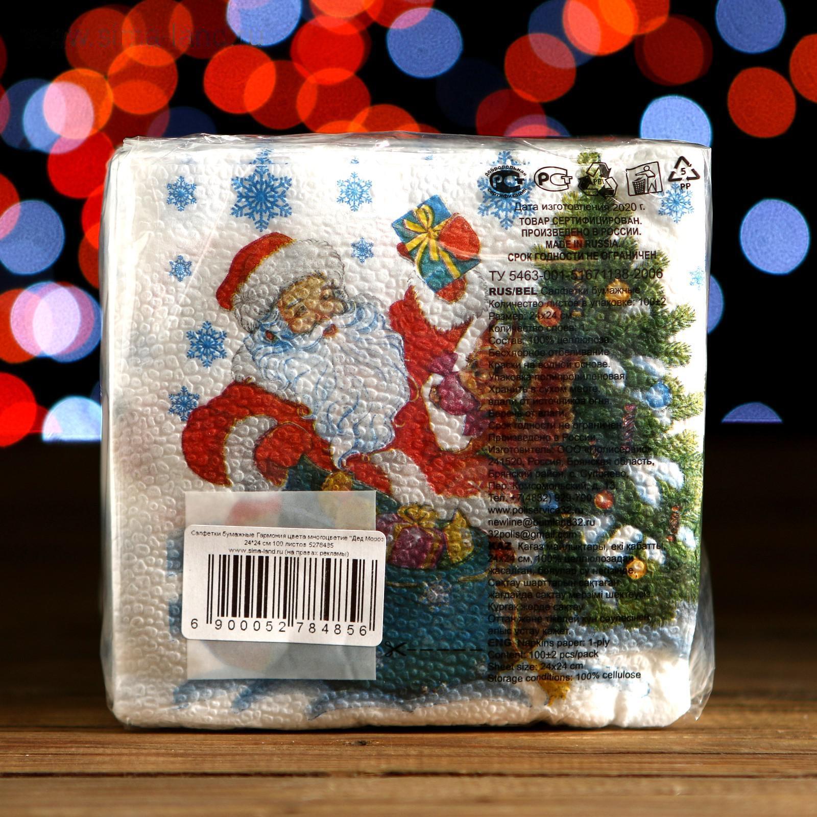 Салфетки бумажные "Гармония цвета", 24х24 см 100 шт, с рисунком "Дед Мороз"