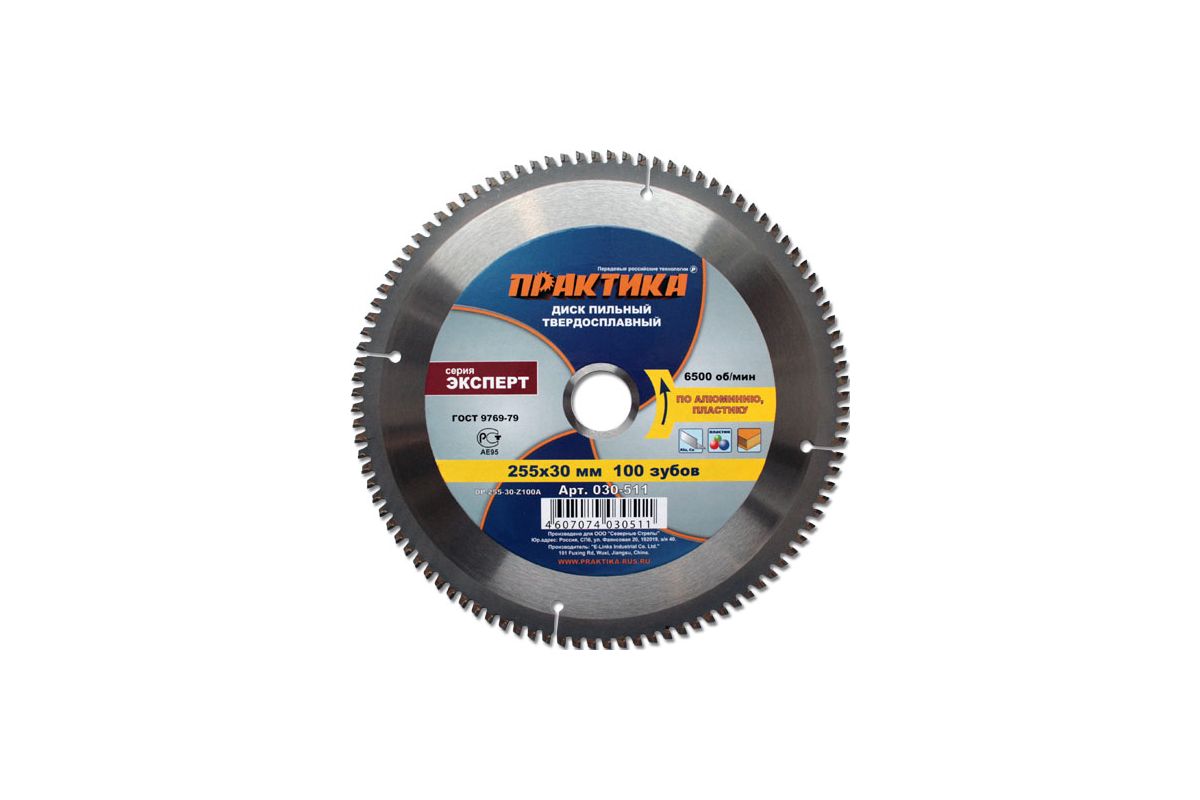 Диск пильный твердосплавный ПРАКТИКА Ф255х30мм 100зуб. (030-511 DP-255-30-Z100A)