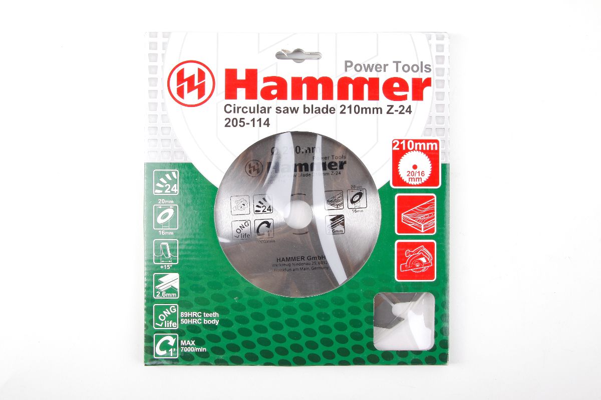 Диск пильный твердосплавный HAMMER Ф210х20мм 24зуб.