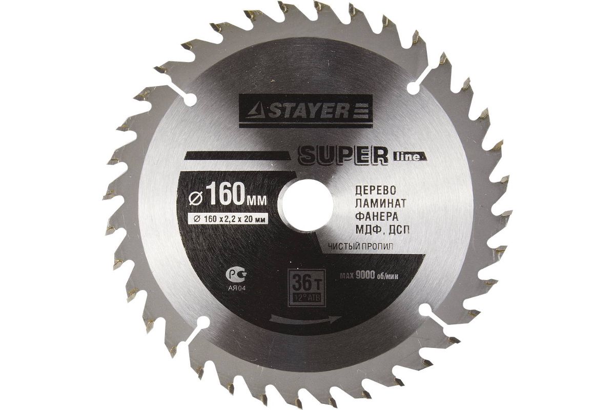 Круг пильный твердосплавный STAYER MASTER 3682-160-20-36 super-line по дереву 160х20мм 36T