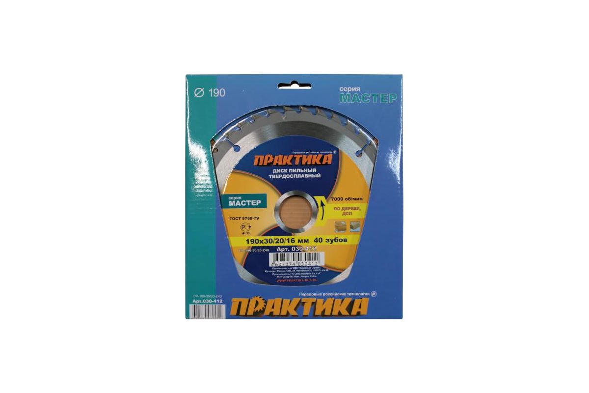 Диск пильный по дереву ПРАКТИКА 030-412 DP-190-30\20-Z40 190 X 40 X 30/20
