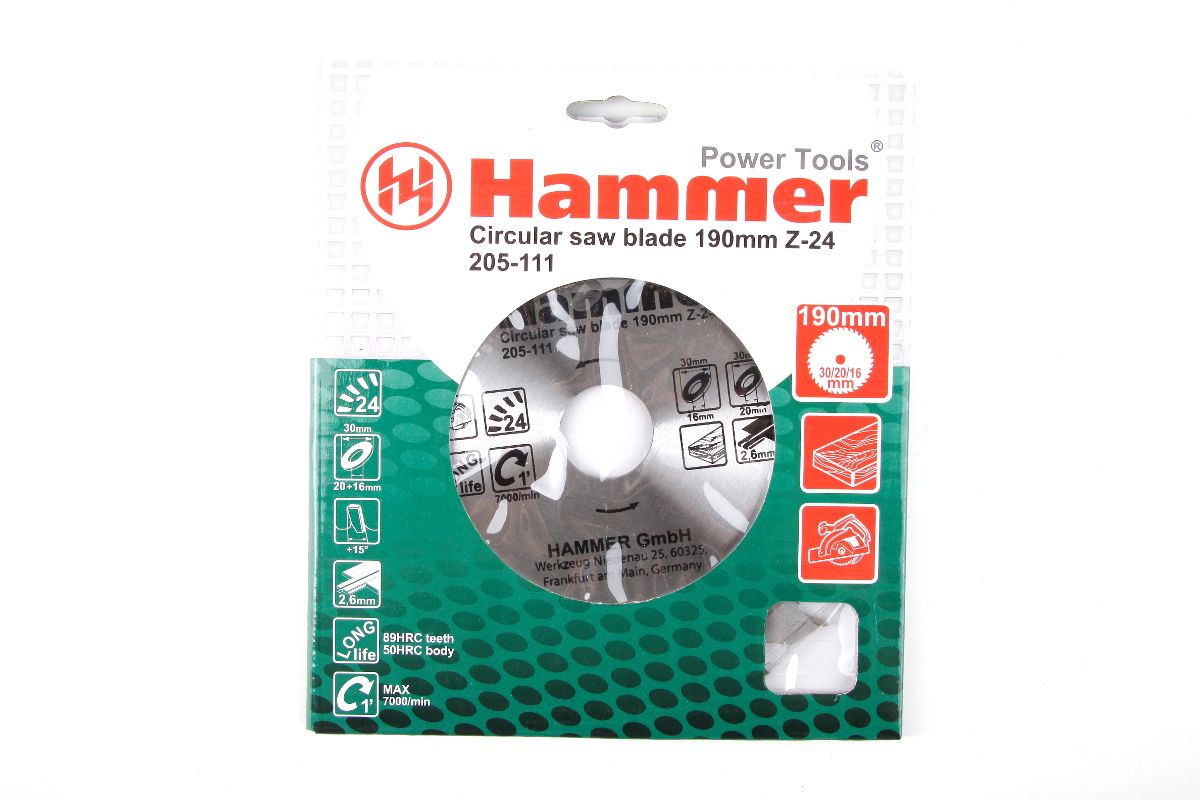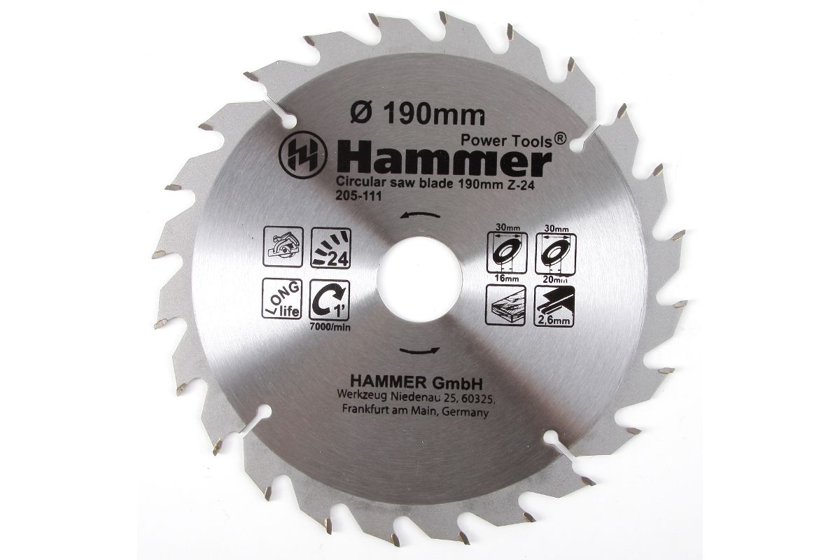 Диск пильный твердосплавный HAMMER Ф190х30мм 24зуб.
