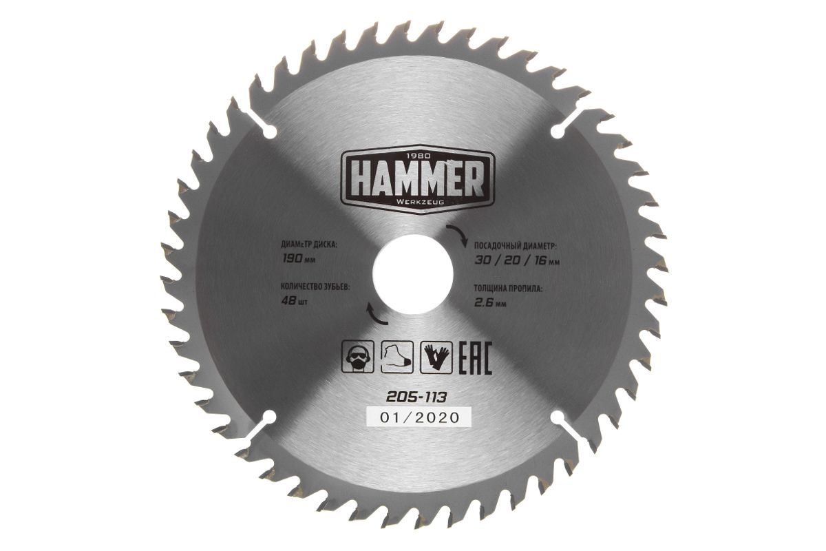 Диск пильный Hammer Flex 205-113 CSB WD 190мм*48*30/20/16мм по дереву