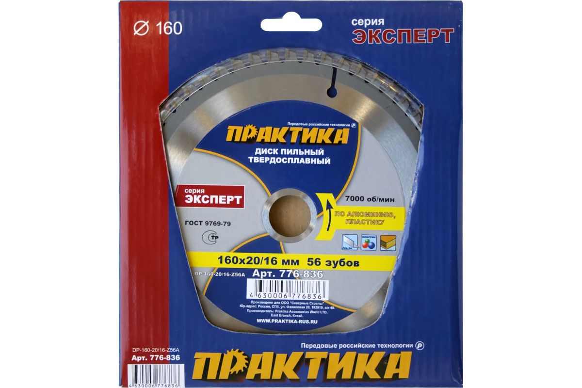 Диск пильный ПРАКТИКА 776-836 DP-160-20/16-Z56A 160х56x20/16мм T=1.8мм по алюм.
