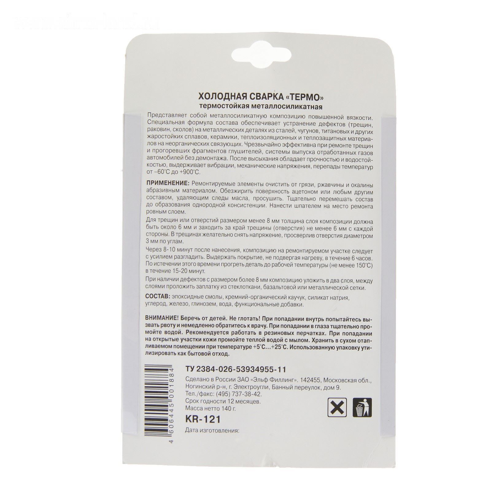 Холодная сварка Kerry "Термо" термостойкая, металлосиликатная, 140 г