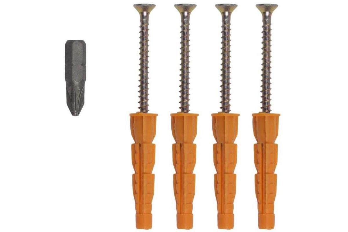 Набор TECH-KREP 114427 для крепления карниза Комплектация: - Универсальный саморез 4,0*50: 4 шт.; - Дюбель универсальный 6*37: 4 шт.; - Бита Pozy №1 25: 1шт