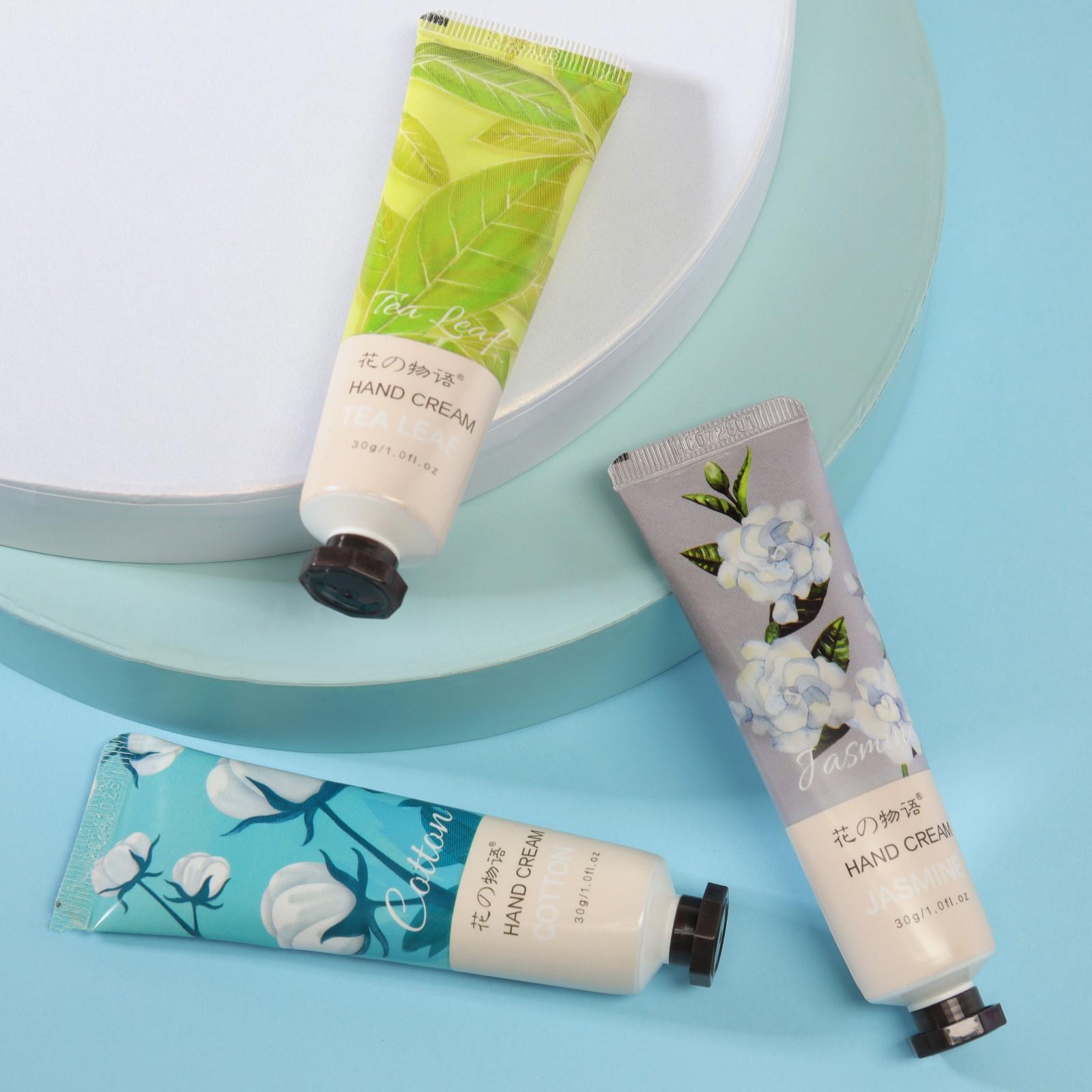 В набор входят увлажняющие крема: Крем для рук «Жасмин» 30 мл, Крем для рук «Хлопок» 30 мл, Крем для рук «Зеленый чай» 30 мл.