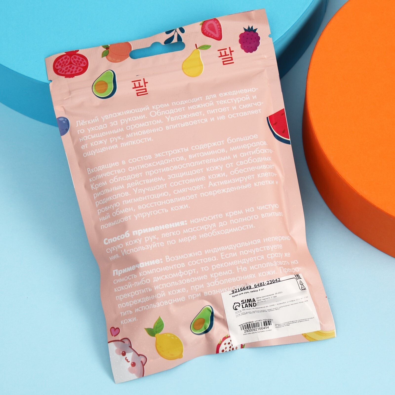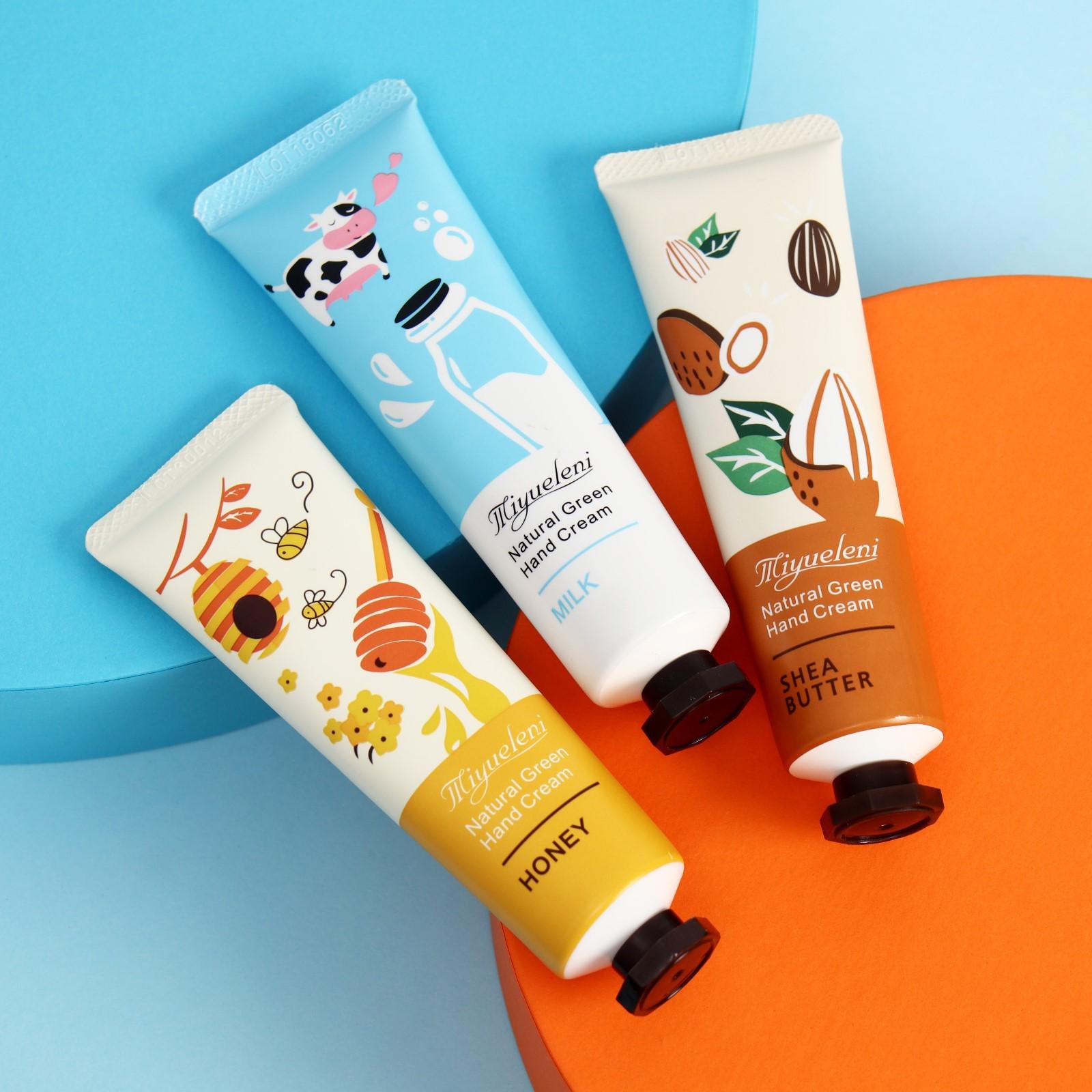 В набор входят увлажняющие крема: Крем для рук «Молоко» 30 мл, Крем для рук «Мёд» 30 мл, Крем для рук «Масло ши» 30 мл.