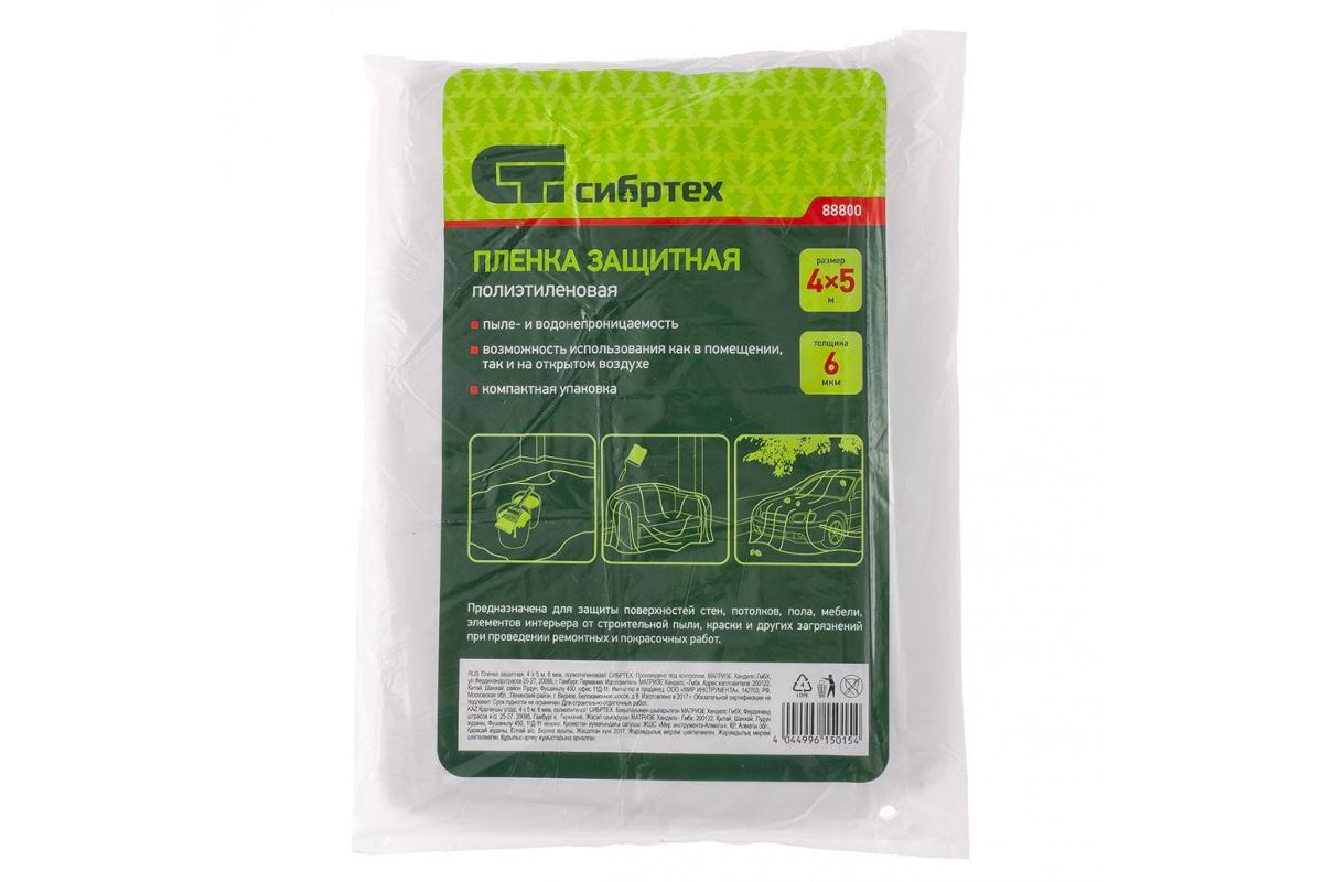 Пленка защитная СИБРТЕХ 88800 4 х 5 метров 6 мкм полиэтиленовая