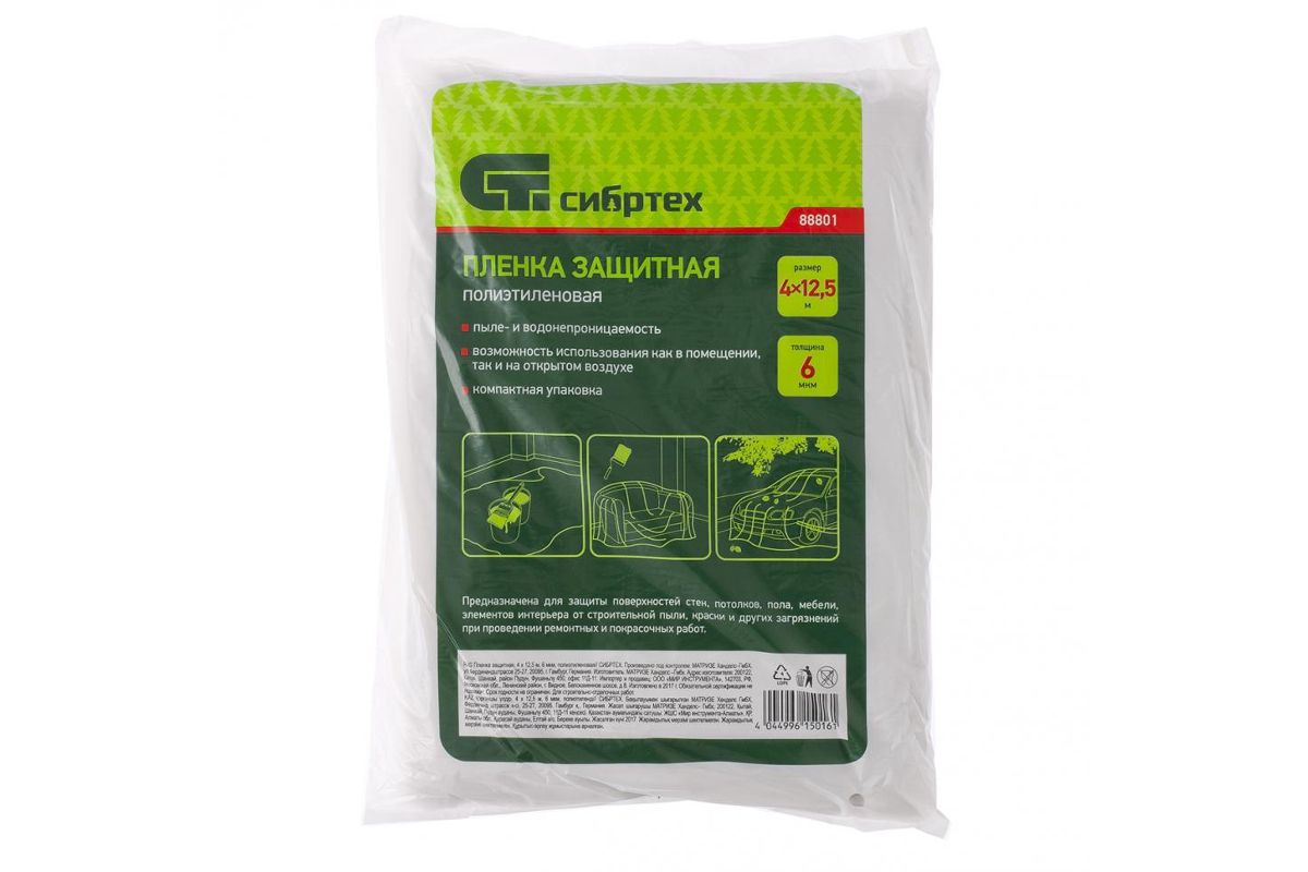 Пленка защитная СИБРТЕХ 88801 4 х 12.5 метров 6 мкм полиэтиленовая