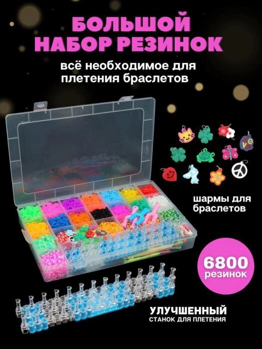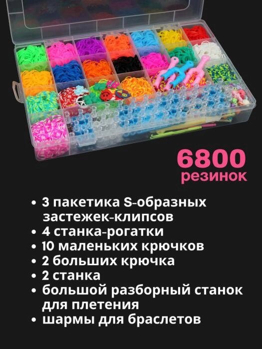 Большой набор резинок для плетения браслетов 6800 шт. детские резиночки со станком